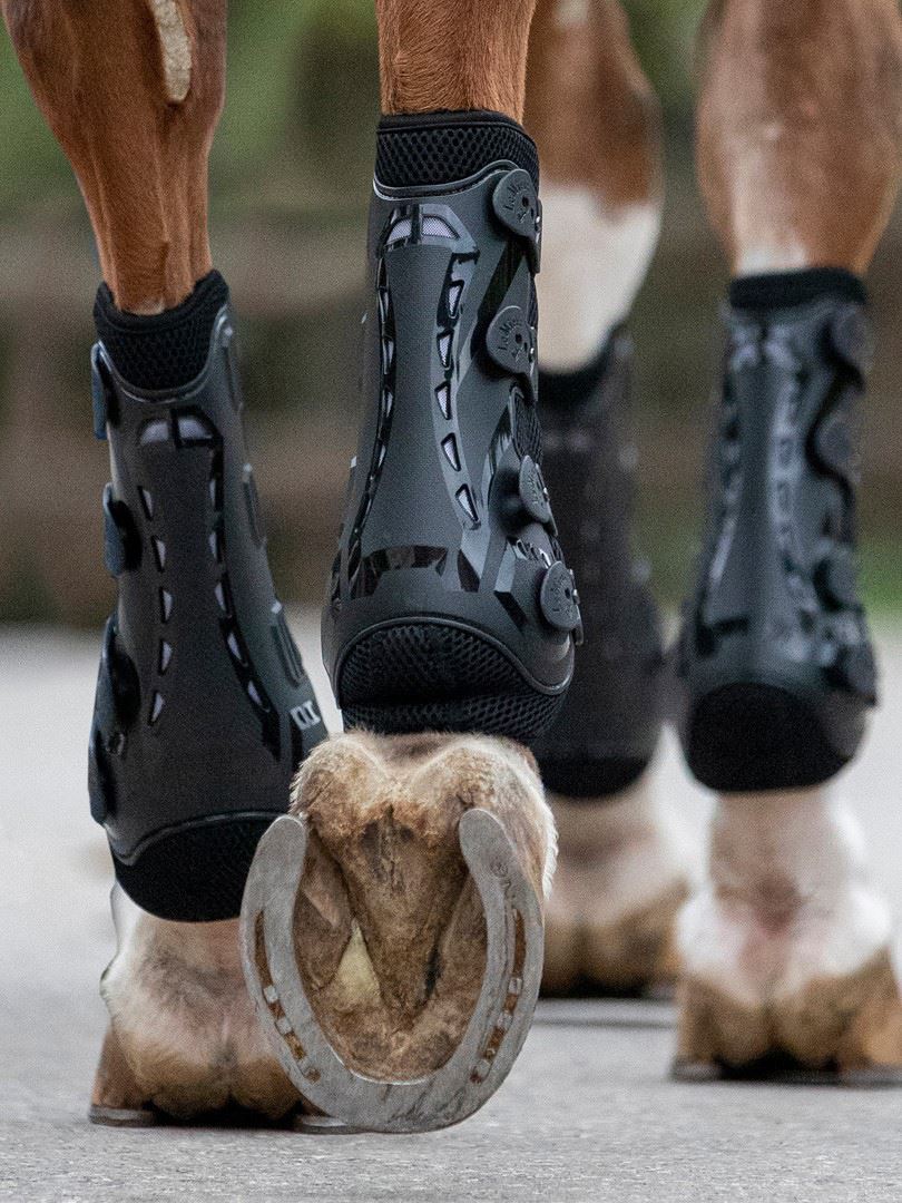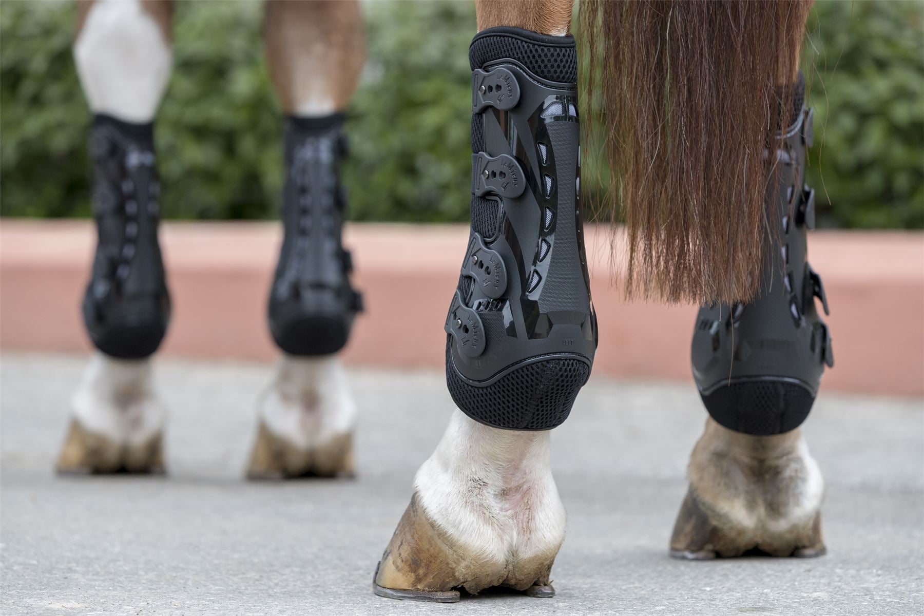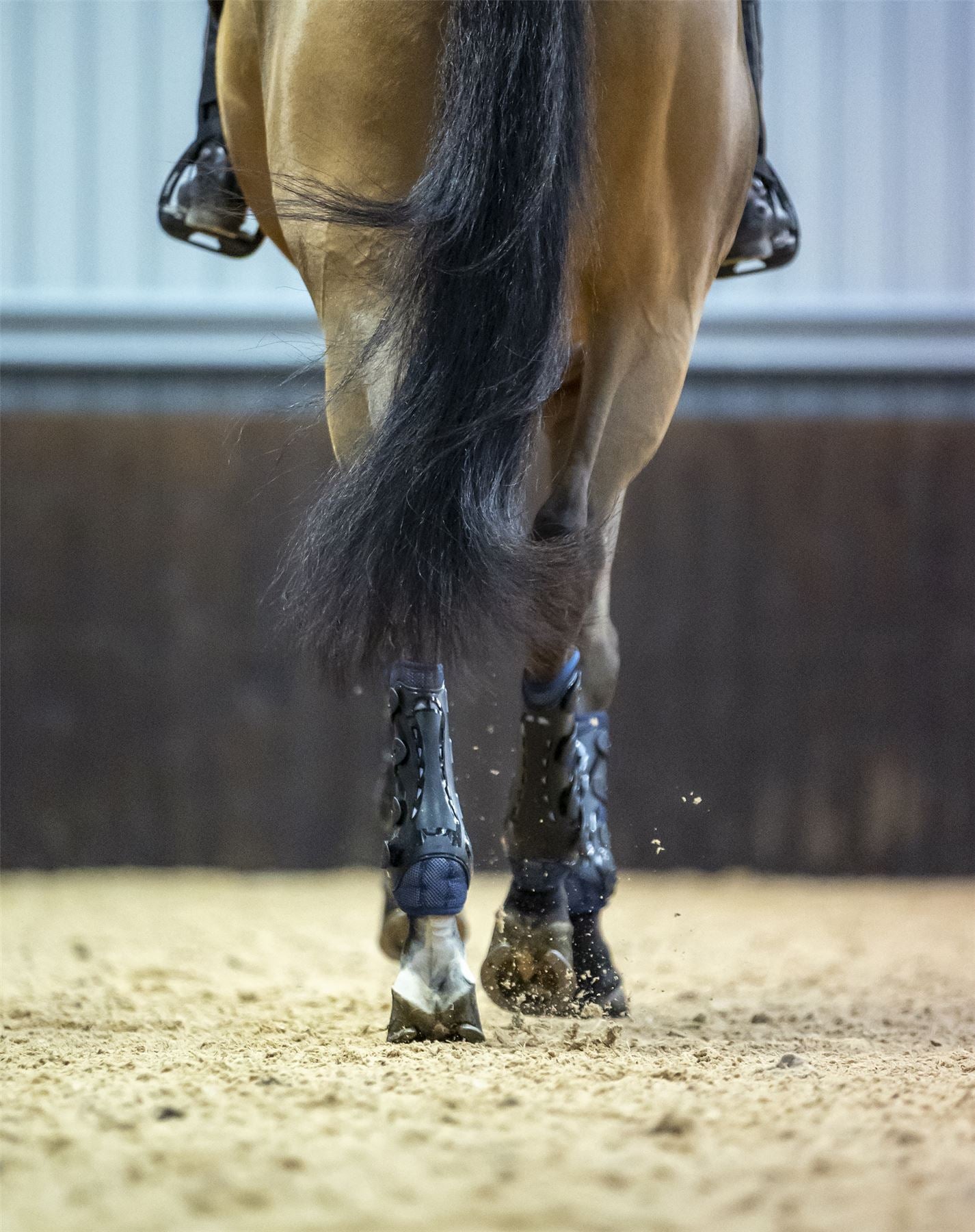 Multi layered micro-mesh gives a high compression factor offering shock absorption without the bulk. The individual cells that make up the 3D mesh each contain four perforations for the rapid dissipation of heat. A strong TPU moulded out shell contours the leg without compromising on strike protection. There are 12 vents down the back of the tendon and 6 over the fetlock joint to ensure the efficient circulation of air, making this boot highly breathable and lightweight. The elastane binding prevents rubbing and a stretch cotton inner lining reduces friction and wicks away any sweat build-up. Quick release end caps make for easy positioning & elasticated fastenings anchor securely for optimum stability. The smooth outer finish minimises the snagging associated with 3D mesh. The new Ultra-Mesh Snug Boot is a perfect all-round boot suitable for both schooling and light jumping, with emphasis on flexibility & breathability during work. Please note Snug Boots are interchangeable with hind boots having a wider inner lining so can also be used on front legs of large boned horses.