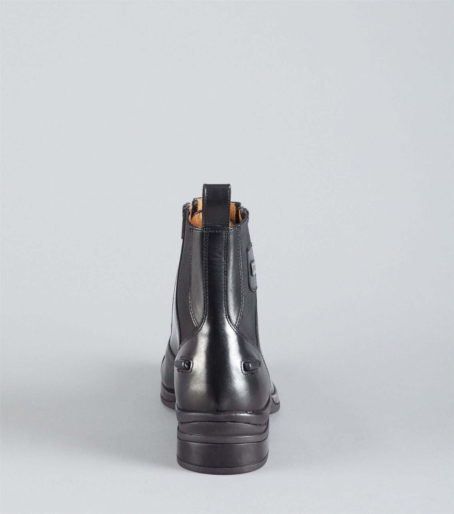 Premium grade leather Premium grade leather lining Elastic side panel Double YKK front zip fastening Soft square toe shape Elasticated lace front panel Added arch support Two point rear spur rest Rear pull-on tabs Anti-slip tread Rubber sole Comfort insole PE branded badge