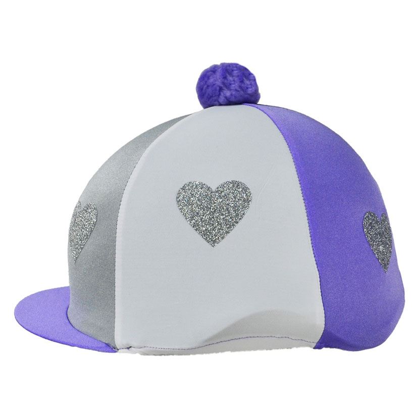 If you love riding, then you will love this hat silk with sparkly hearts in three contrasting tones of glitter. The peaked silk features printed hearts on each panel and a faux fur pom-pom.