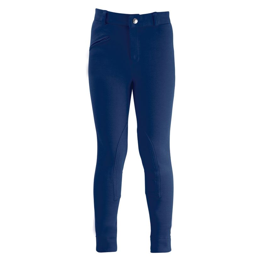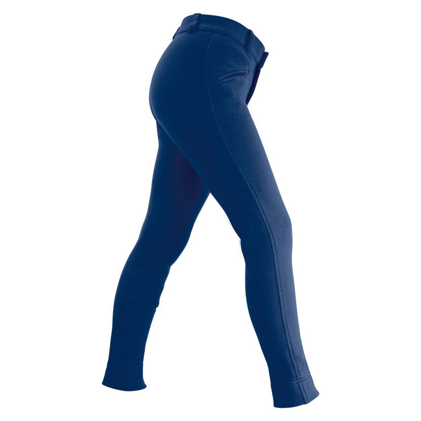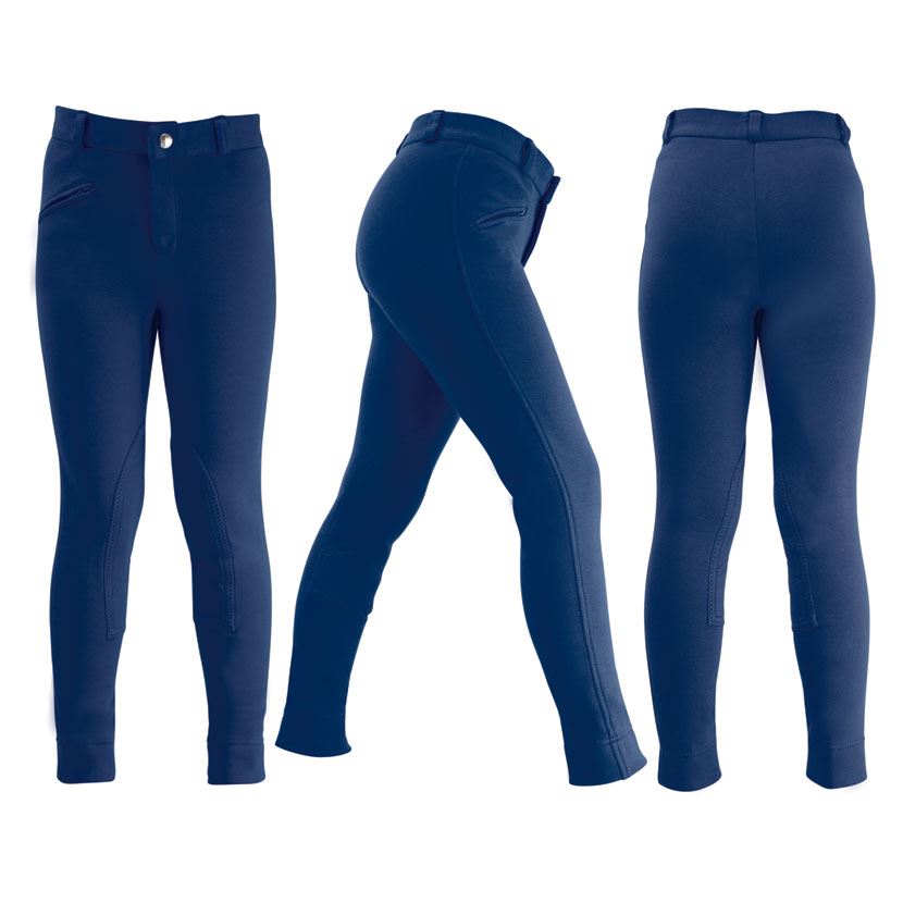 A classic child�s jodhpur giving a traditional style and suitable for everyday wear. This practical jodhpur is made with cotton and spandex for great 4-way stretch increasing comfort. The jodhpur features a discrete front zip pocket and rear pockets, a full zip fly, belt loops and rolled up bottoms. A good all-round jodhpur. Machine washable.