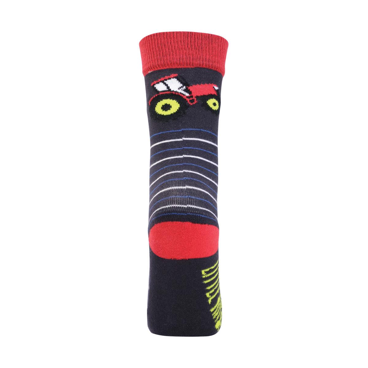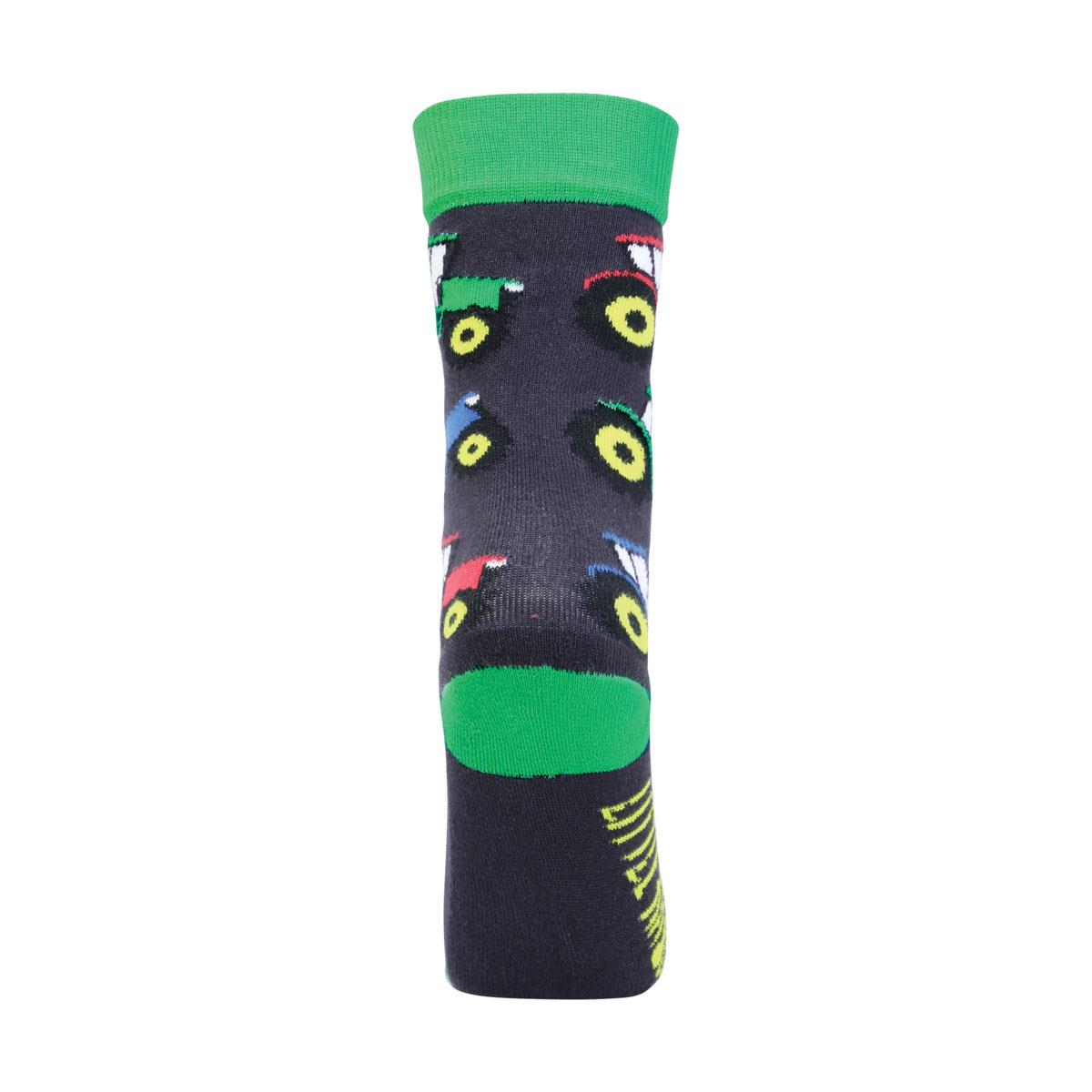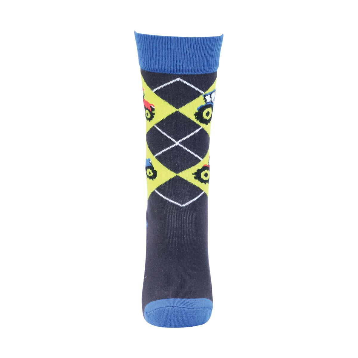 The perfect sock to keep your child comfortable and fresh! A fun and colourful pack of three socks that benefit from bamboo moisture wicking properties to keep the foot cool and a soft padding from heel to toe, makes them perfect for riding. The first design features the three coloured tractors; the second is an argyle pattern with tractors; the final sock is striped with tractors at the top. Perfectly coordinates with the rest of the Tractor Collection.