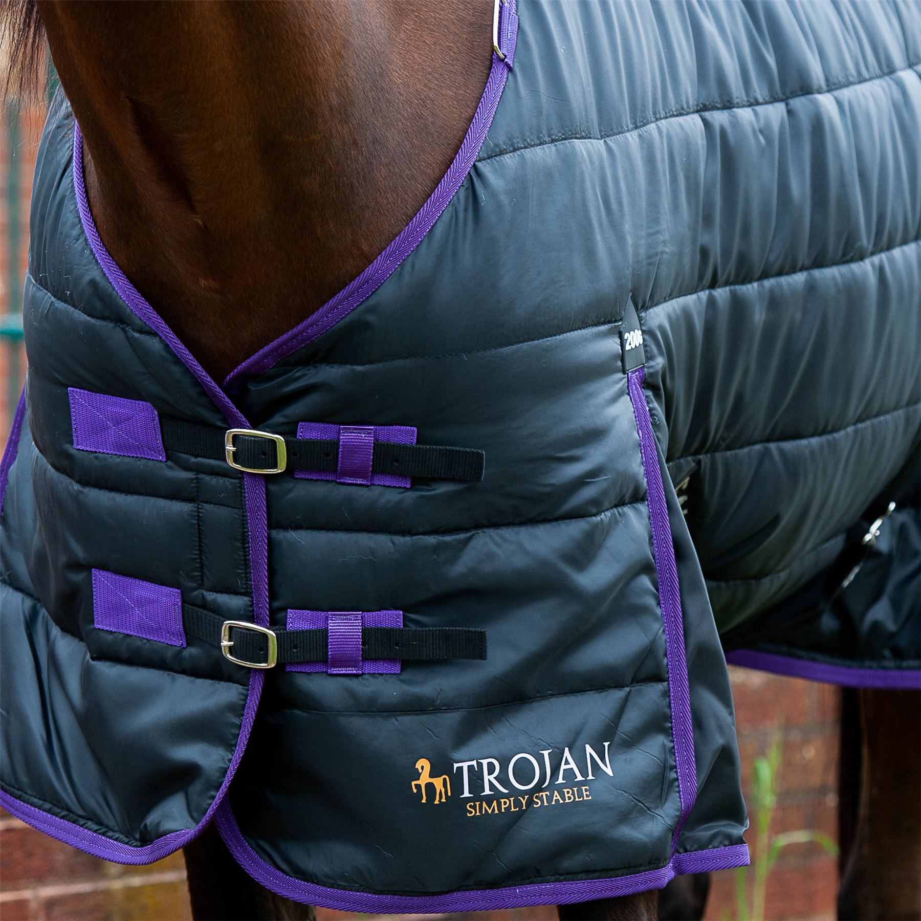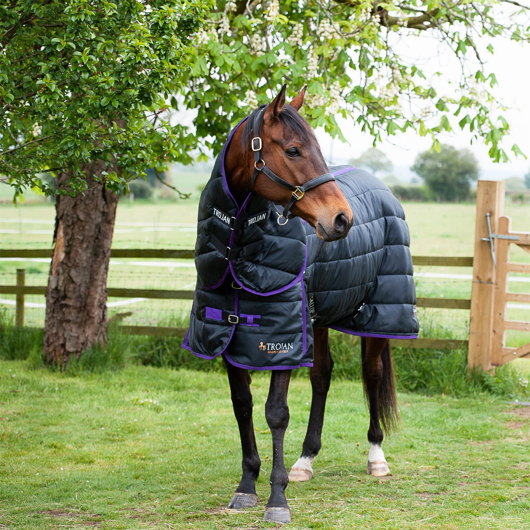 A new addition to the Trojan range; the 200g Dual Set offers greater flexibility thanks to its detachable neck cover, with benefits of layering in changing weathers. The included neck cover fastens with elasticated touch close straps. This 200g rug set is a must for Autumn/Winter, and features all of the benefits of the Trojan Stable range: 210D breathable outer, shoulder pleats for ease of movement, adjustable buckle chest straps, cross surcingles.