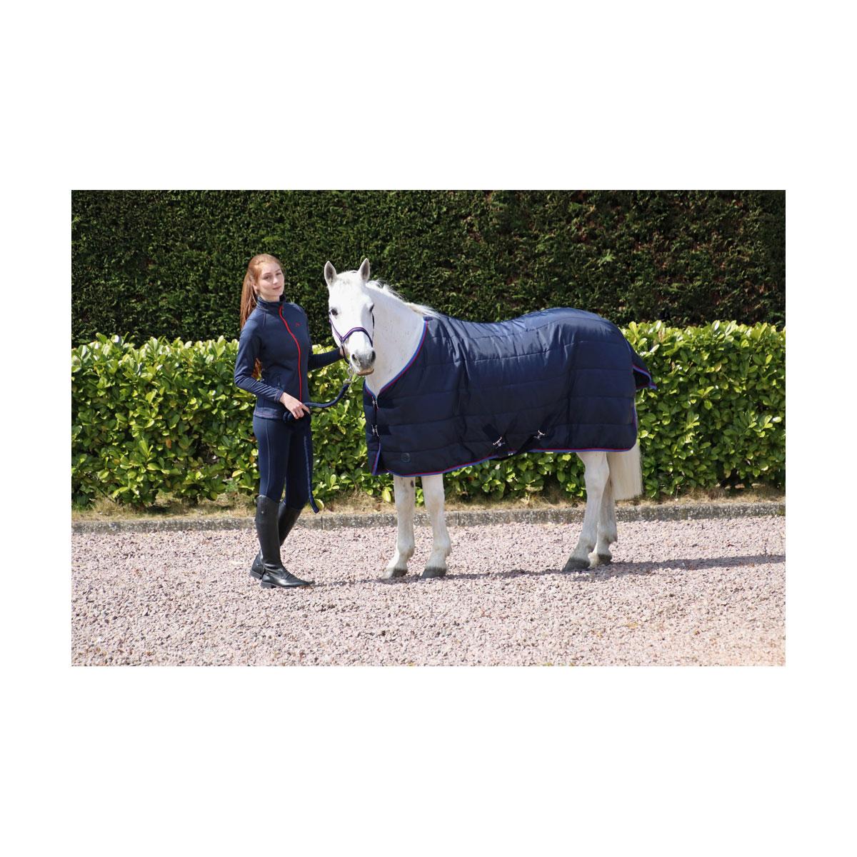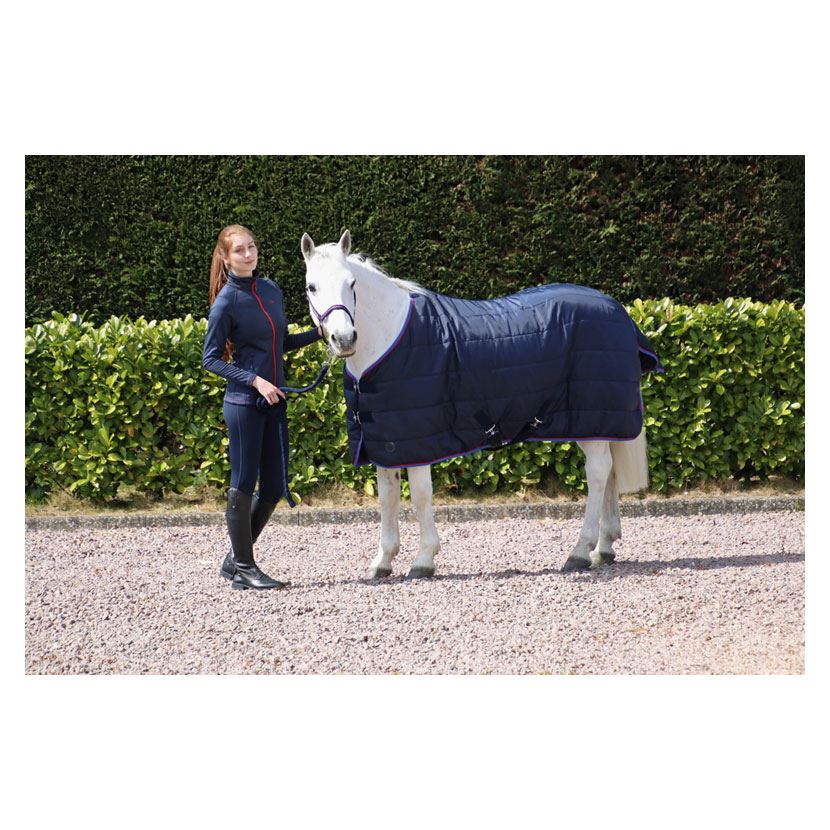 This 100g fill stable rug is an ideal layer for cooler days and nights in the stable! Featuring a fleece lined wither area to prevent rubbing and front twin surcingle chest closure to ensure a secure fit. A must have stable rug featuring blue and red binding.