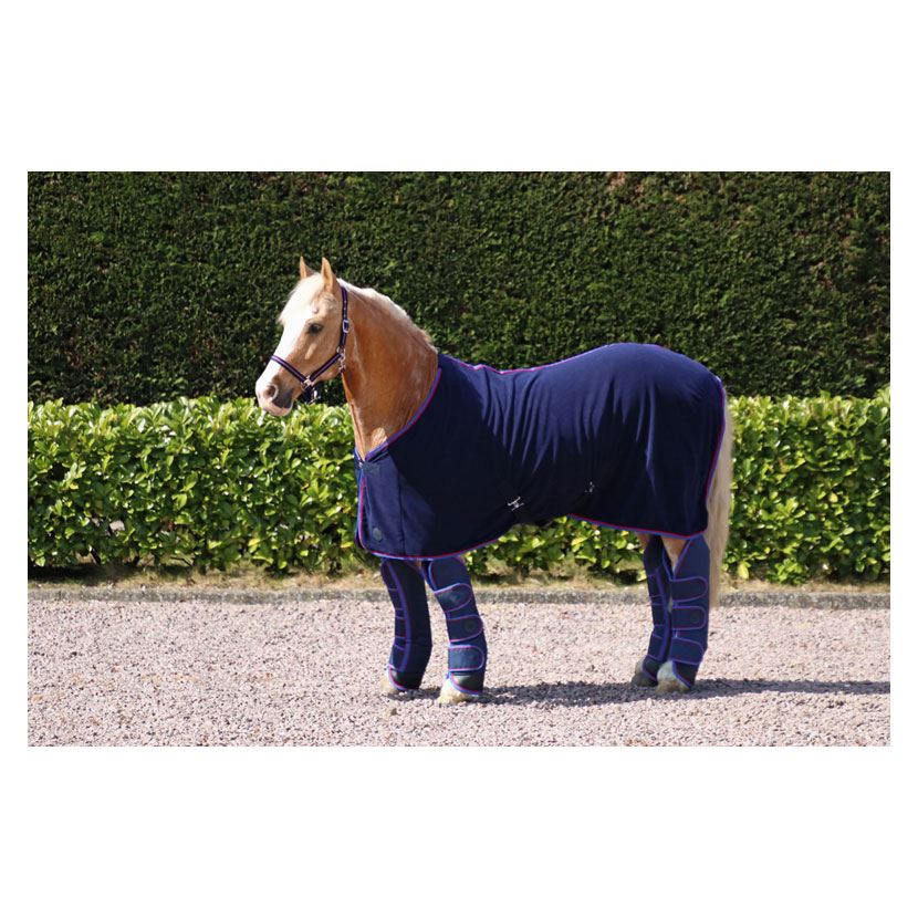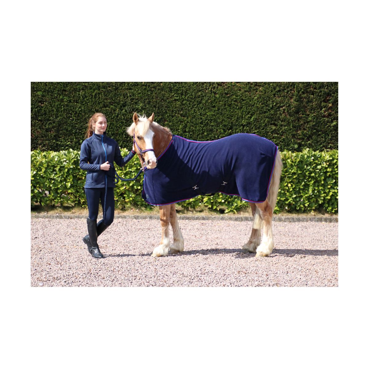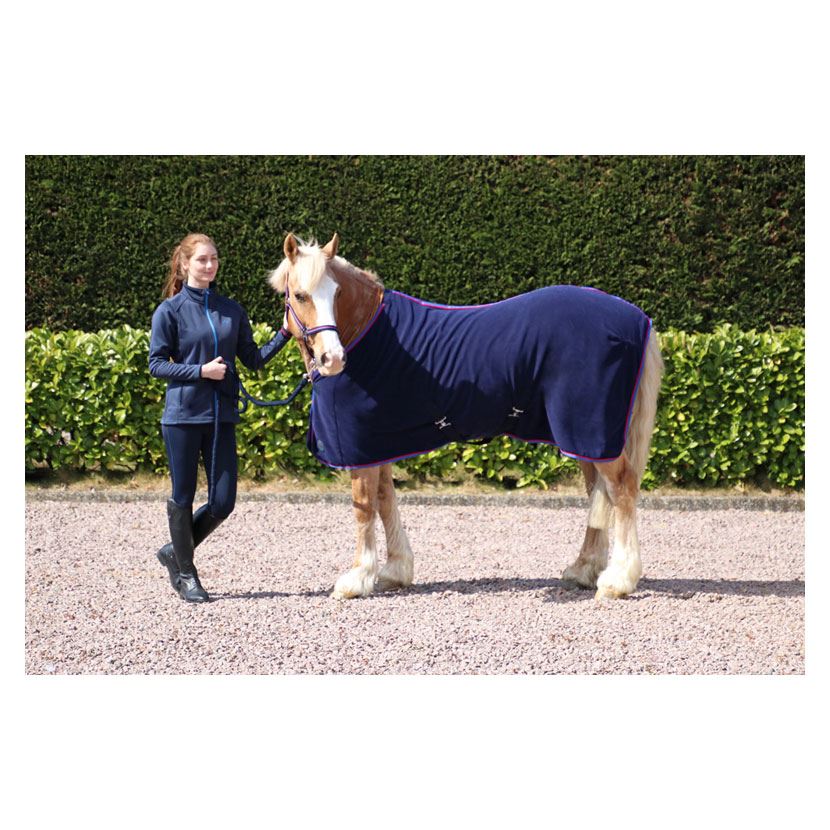 A modern, high quality rug ideal for daily use, when travelling, after exercise and after competition. The fleece fabric traps air for improved insulation and reduces the risk of your horse catching a chill. The rug has a single front fastening and cross surcingle�s for a secure fit and is machine washable.