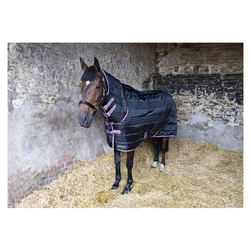 Your horse will be nice and warm all winter wearing this 200g stable rug, with an integrated contoured neck cover and tail flap for added warmth. It features touch tape fastenings on the neck, twin buckle chest fastenings, adjustable cross surcingle�s and a fillet string to keep the rug securely in place when your horse is rolling or laying down. The black colour means that stable stains are less noticeable and your horse will still look smart. Designed in black to make stable stains less noticeable and keep your horse looking smart.
