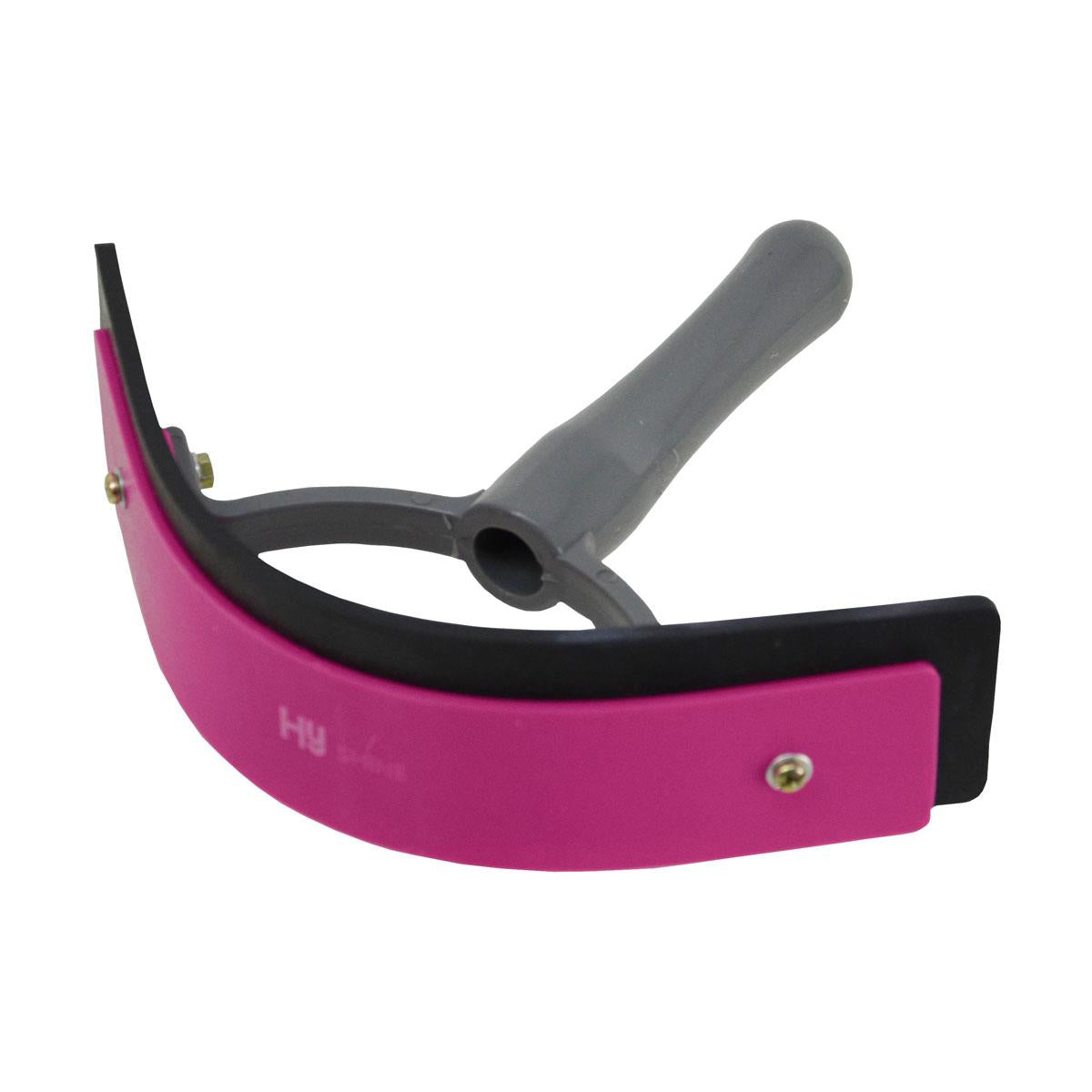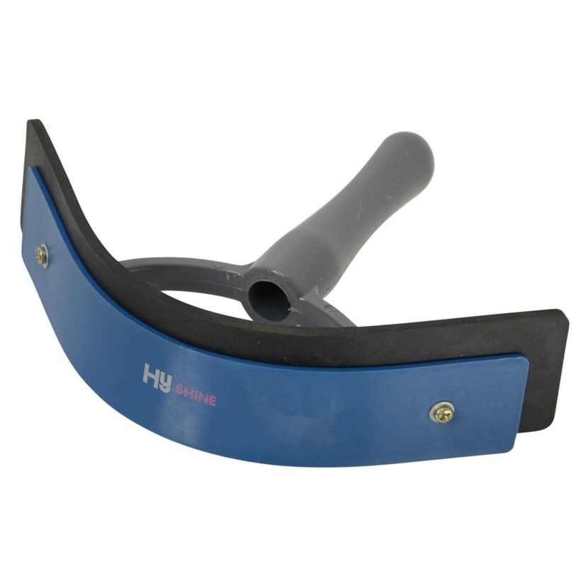 Two tone, soft touch sweat scraper with a rubber edge on one side to remove excess water from the horse's coat.