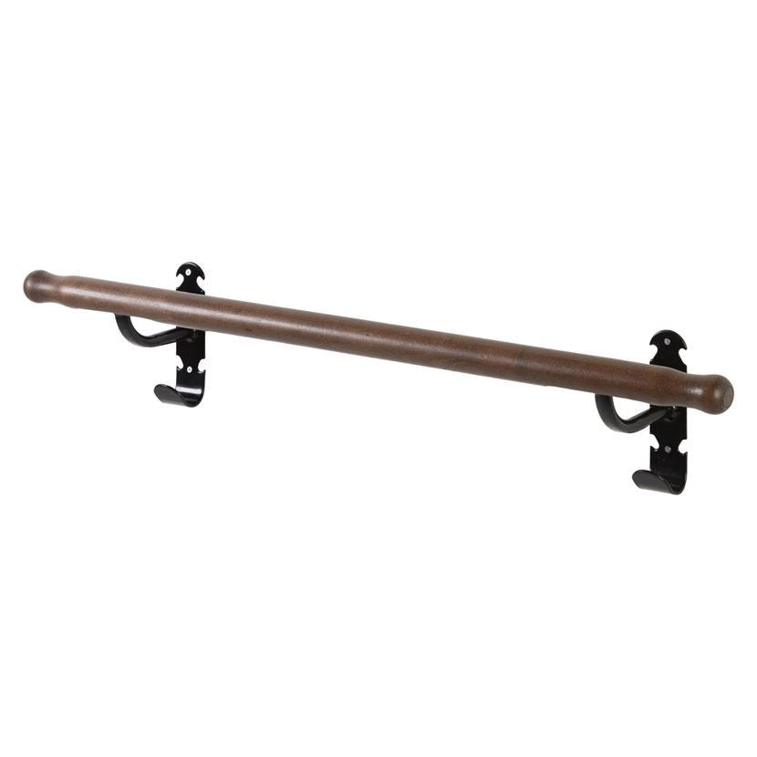 Expanding our highly popular Retro range, this rail is ideal for rugs outside the stable or in the tack room. The stylish metalwork and beautiful dark wood evoke the quality and class of centuries gone by. Good looking, the timber is turned with traditional end finials. The combination of wrought iron styled metalwork and waxed hardwood make this a quality partner to the highly popular Retro Saddle and Bridle Racks introduced in 2016. They have attracted the attention of the most discerning architects and owners, and are now seen in the finest tack rooms around the world; only the practical functionality exceeds the rich appearance. Increasingly used in shops too, they raise the standard of presentation. With price tags that are within everyone's reach, all can enjoy this traditional styling. In addition to the wall hooks, the pole ends provide hanging space for hats, coats, head collars, bridles and boots. Black STUBBYFINE coated steel construction and beautiful waxed hardwood.
