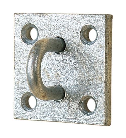 Heavy duty attachment point for stall guards. Hot dip galvanised. 20mm x 14mm inside the eye. Height 5cm, Width 5cm, Weight 0.1kg.