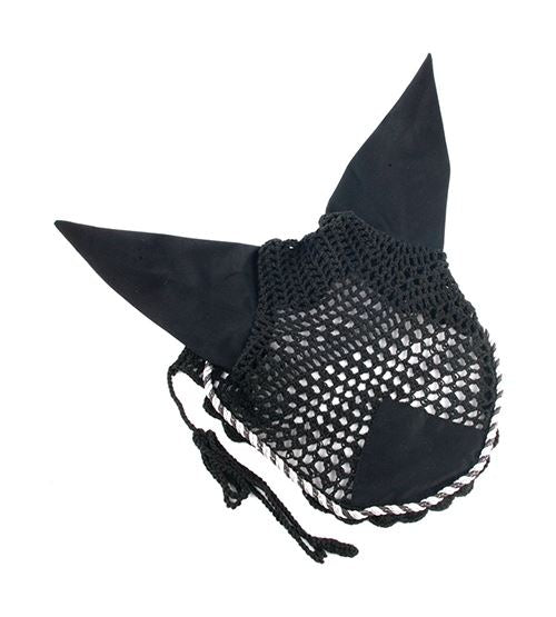 This is Hy's crochet cotton fly screen with ears and deluxe cord binding detail. Easy One size fits all. Attaches to head collars and bridles. Great to use when riding and you can match the colours to the HySPEED Deluxe Saddle Cloth with Cord Binding to really look the part!