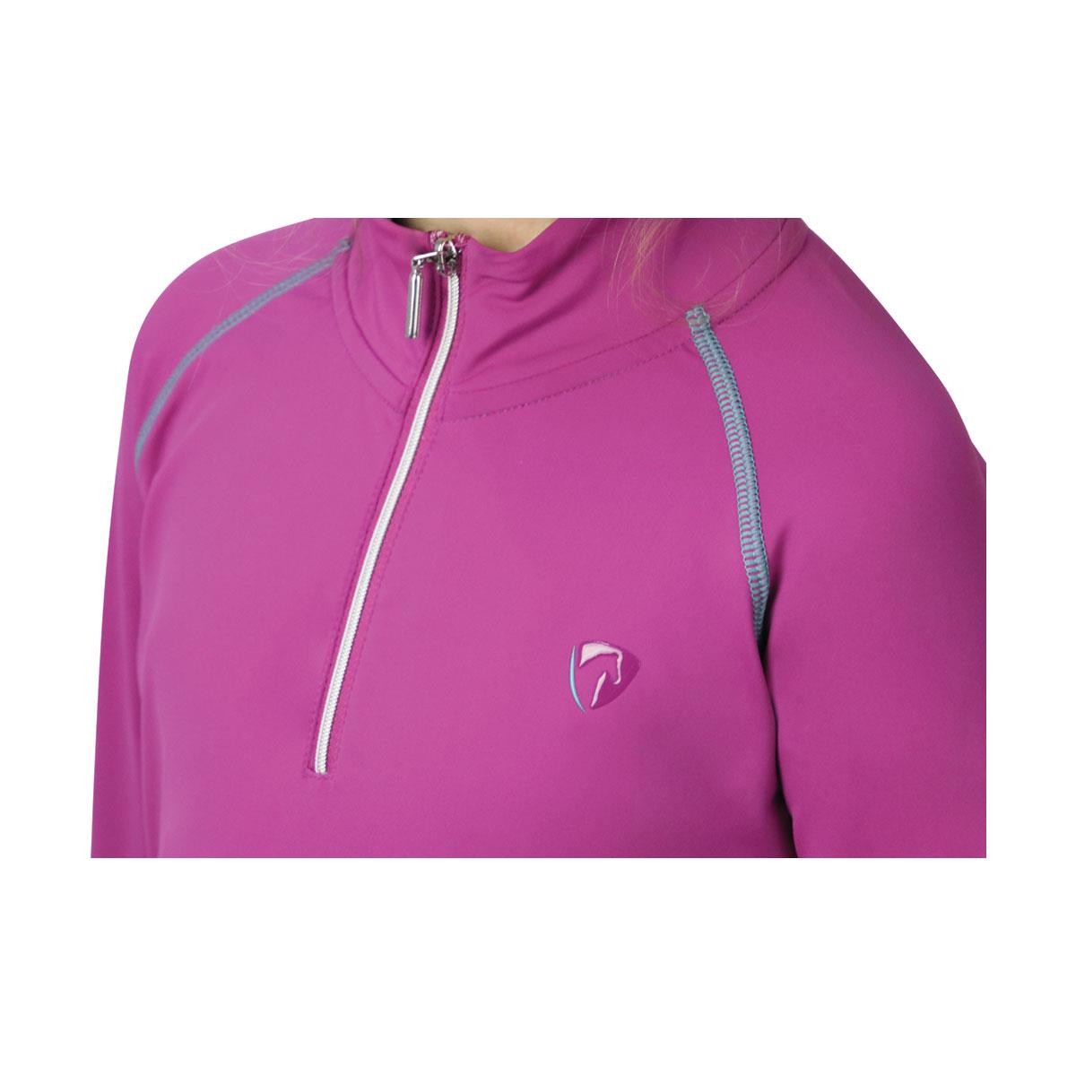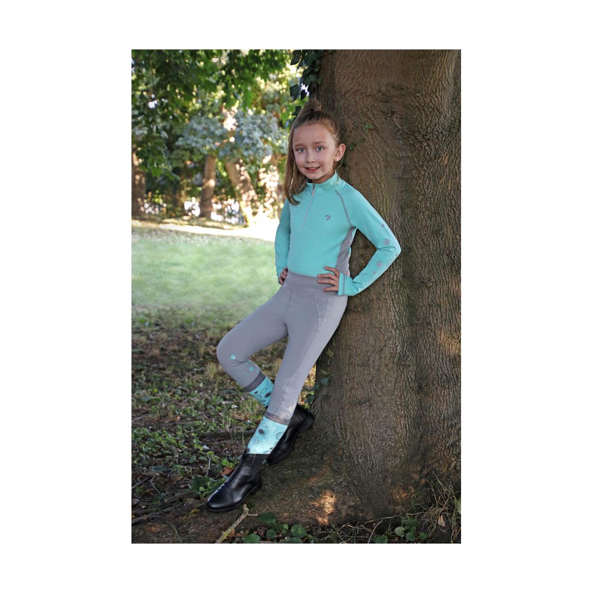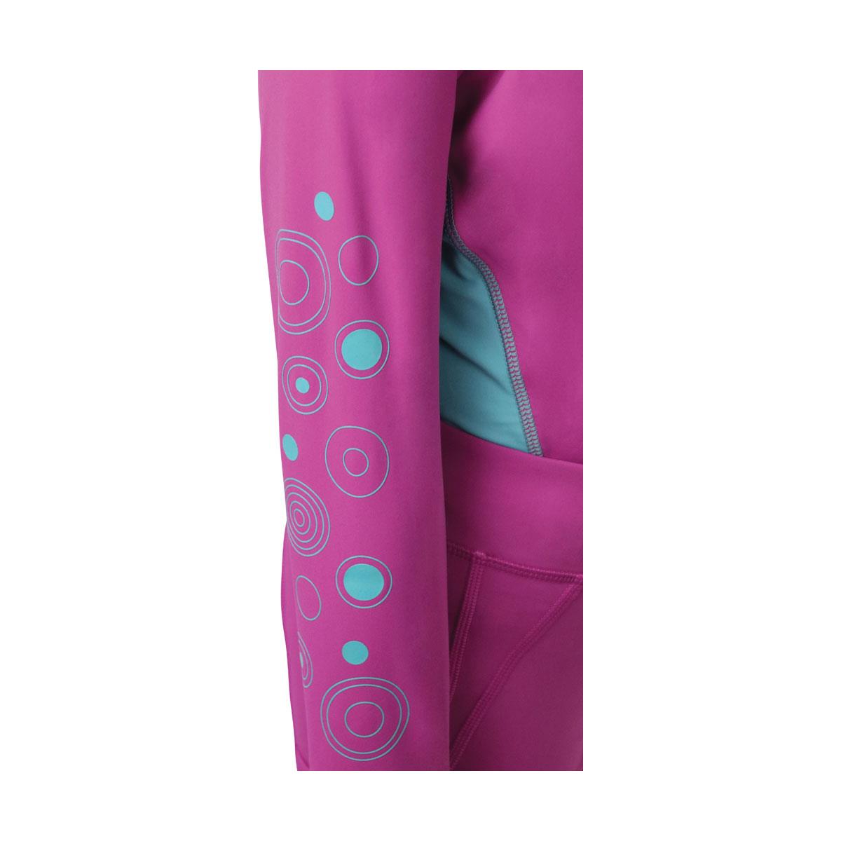 This is the perfect base layer for training or galloping round a cross country course, ideal for the active equestrian! With a snazzy, silicone ecliptic circle pattern on the arms in contrasting colours and matching flatlock stitching. This close fit base layer is made from soft, stretchable fabric and features a ¾ zip. Matching items available.