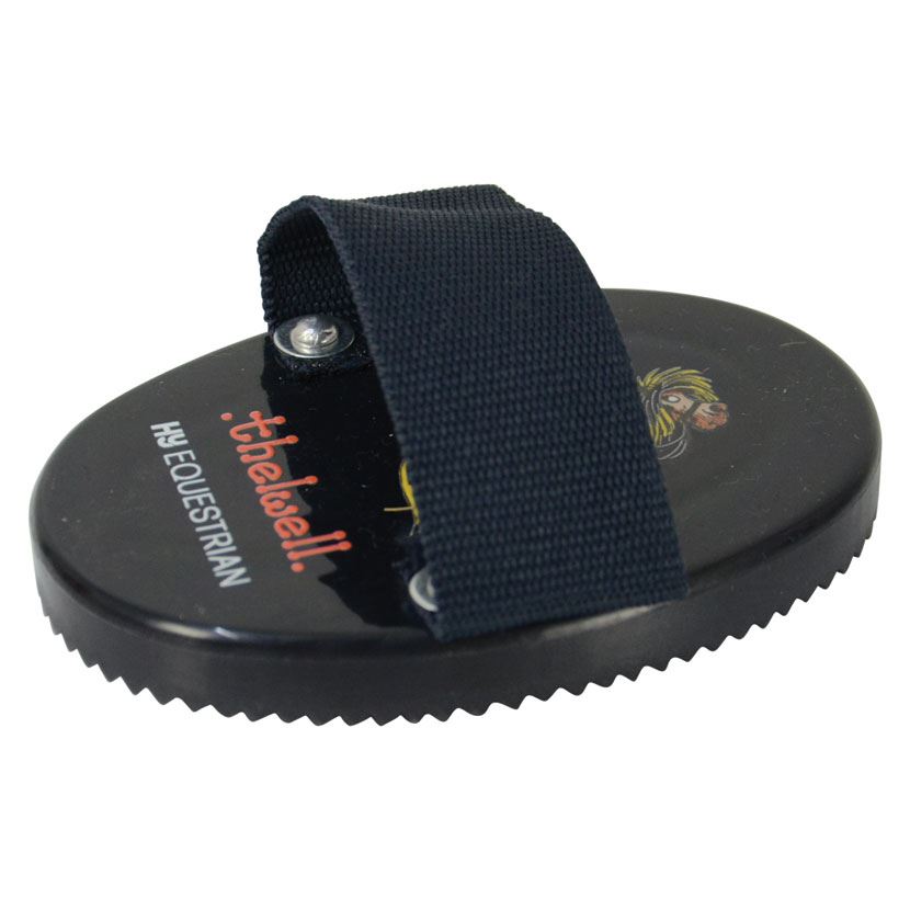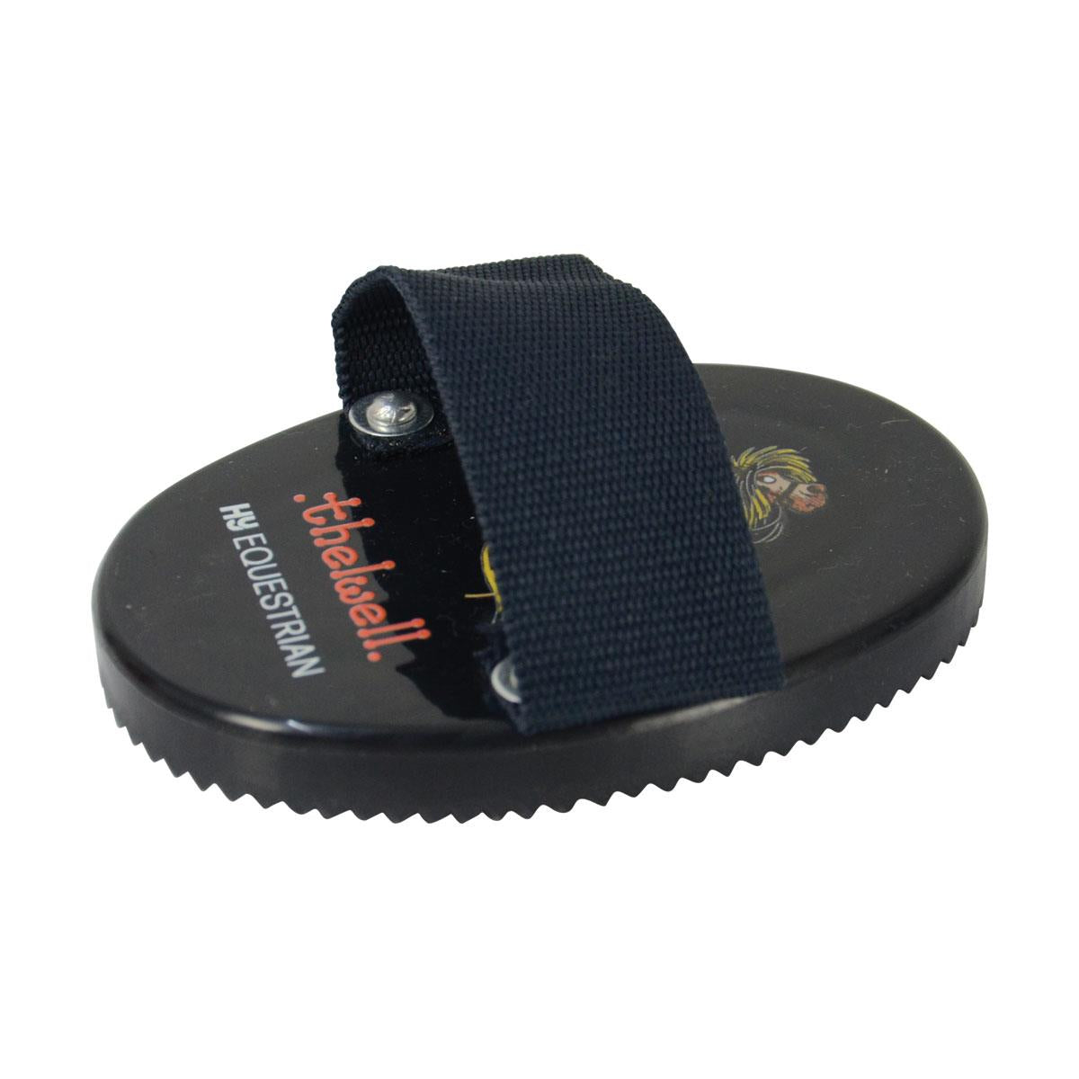Oval rubber curry comb with a hand strap. Featuring the Thelwell charcter on the back to match the rest of the Thelwell Collection.