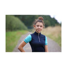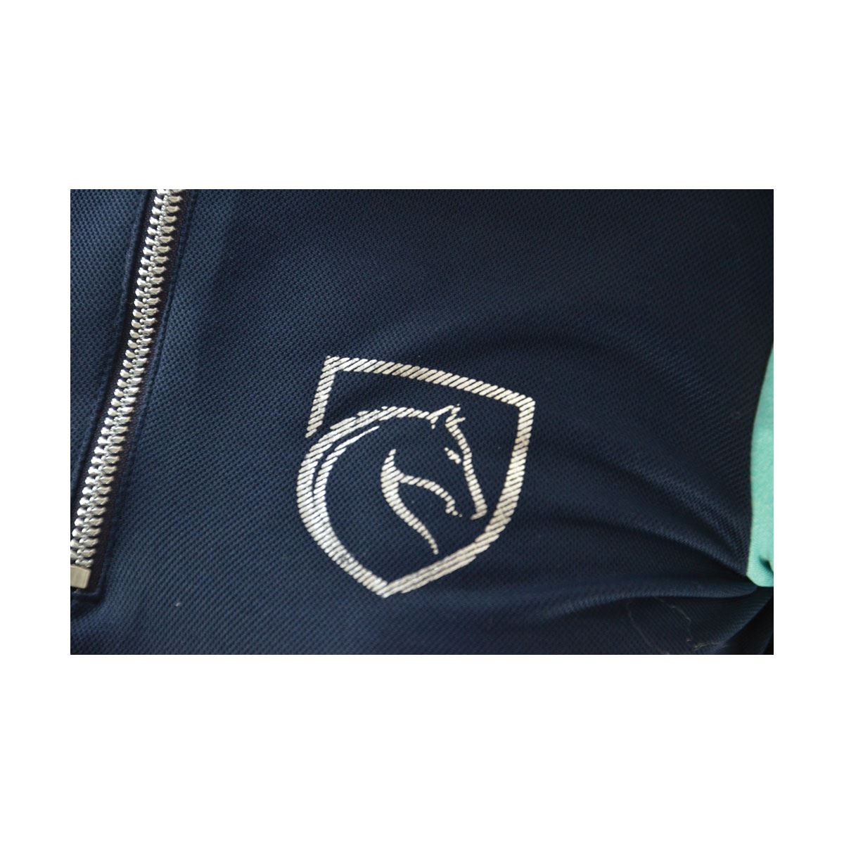 This lightweight sports shirt is extremely comfortable and allows a full range of movement in and out of the saddle. Breathable and quick drying, the shirt features a high collar and navy piping on the short sleeves. The stylish contrasting colours are complemented by the striking silver quarter zip. Looks great when matched with other clothing from the HyFASHION Mizs Beatrice collection.