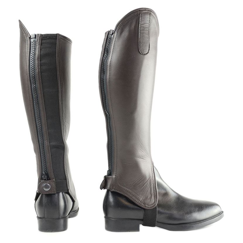 A high quality, smart leather gaiter designed to achieve the look of long boots. These gaiters are close fitting with an elasticated calf to accommodate a wide range of shapes and sizes. Complete with a YKK zip fastening, secure press stud at the bottom and a reinforced elastic foot strap.