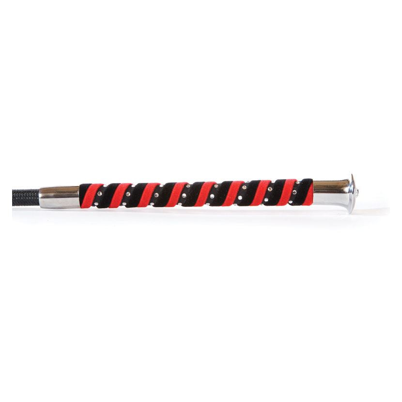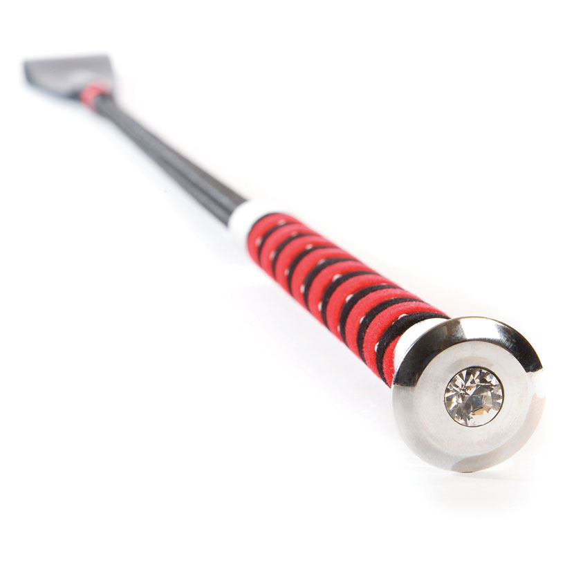 The handle is adorned with an array of dazzling diamantes, adding a touch of glamour and sophistication to your riding gear. The metal cap is embellished with a large, shimmering diamante stone, ensuring you won't go unnoticed in the riding field. This whip is not just about the sparkle, but also about superior quality and performance that meets the needs of discerning riders.