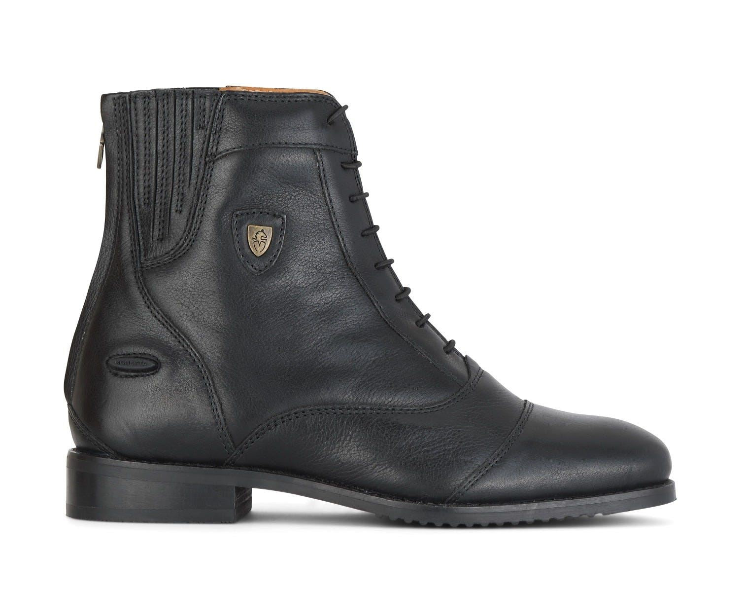 Fully leather lined for optimal comfort, these paddock boots enhance fit with their unique stretch panels and practical mock laces. Easy to wear, they also feature rear YKK zips for effortless on and off. For added functionality, the boots include leather grip spur rests that ensure your stability and safety while riding.