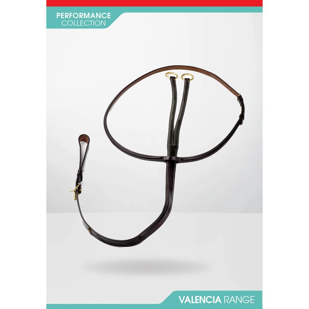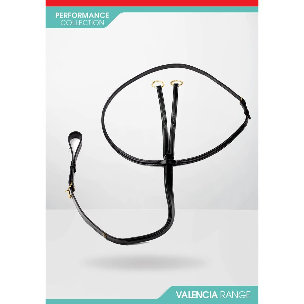 Designed to match the Valencia collection perfectly, this high-quality martingale is made from a supple Luxury leather and features a contrast cream stitch with decorative design. Features brass hardware. Pony, Cob or Full Colours Black, Light Havana, or Tan