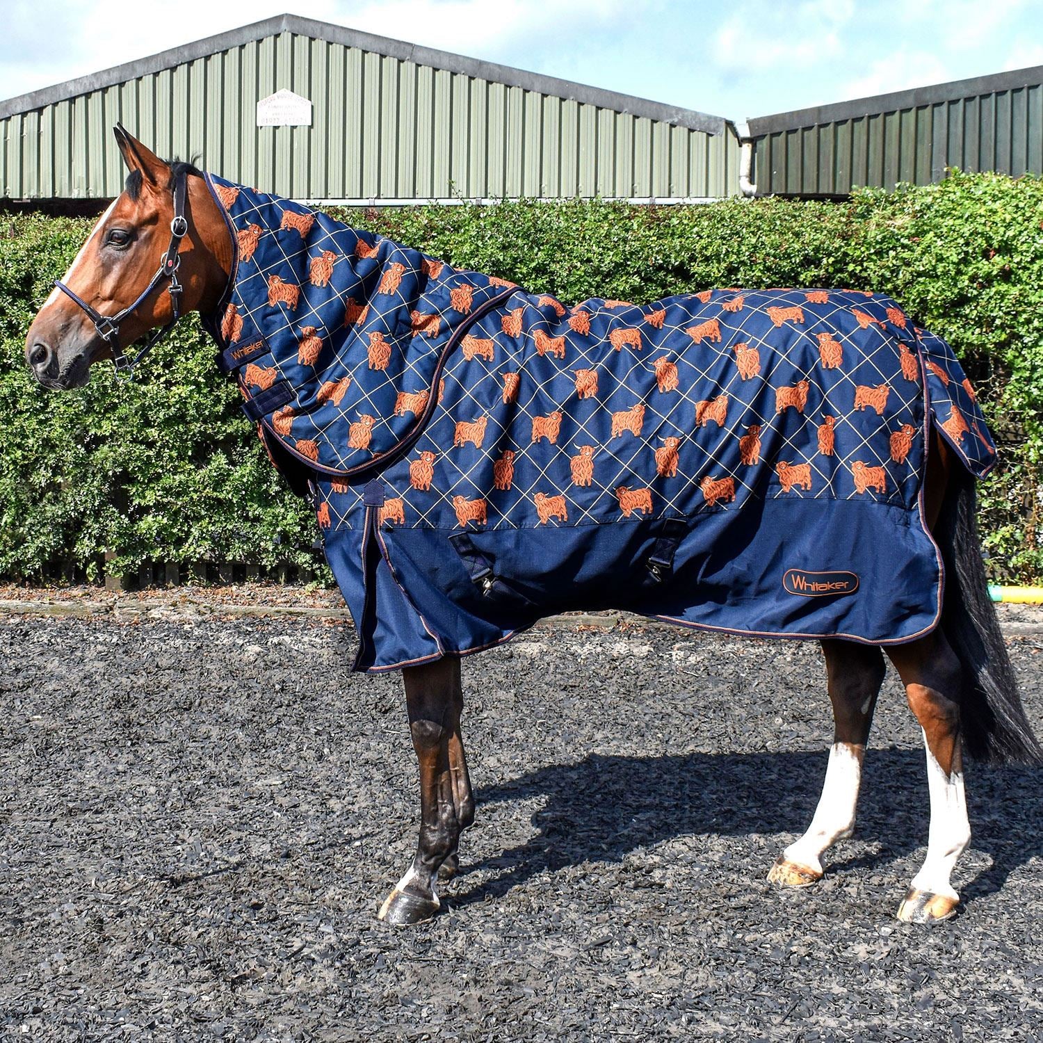 First up, the WHITAKER RASTRICK TURNOUT RUG 100GM. This isn’t just any rug; it’s a horse’s best defense against the infamous British drizzle. Waterproof, breathable, and tougher than a week-old scone, it's perfect for everyday heroics in the field. And with reflective threads, your horse will be the most visible star on the cloudiest of nights!