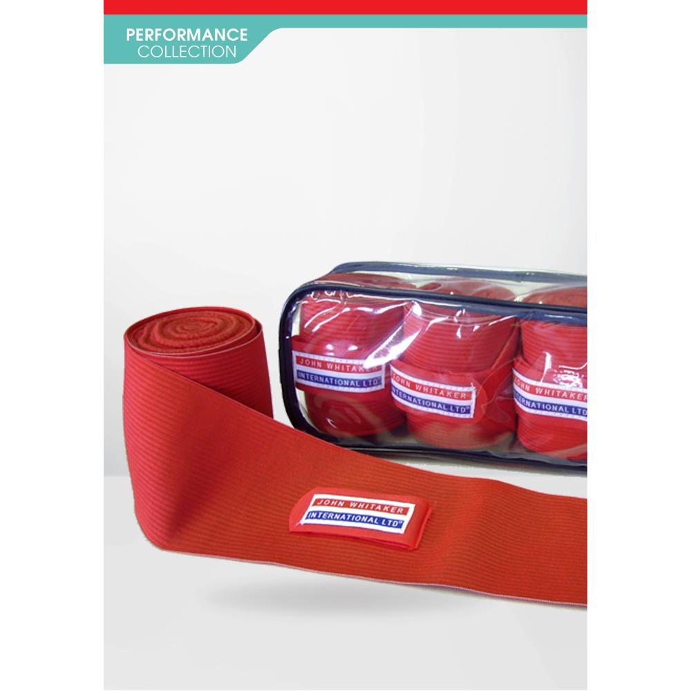 Shop now at Just Horse Riders for the top-grade John Whitaker Elastic Training Bandages. Perfect for training sessions while riding, these bandages are designed to keep your horse's muscles warm and prevent injuries. They are 3m long and come in a one-size-fits-all design.