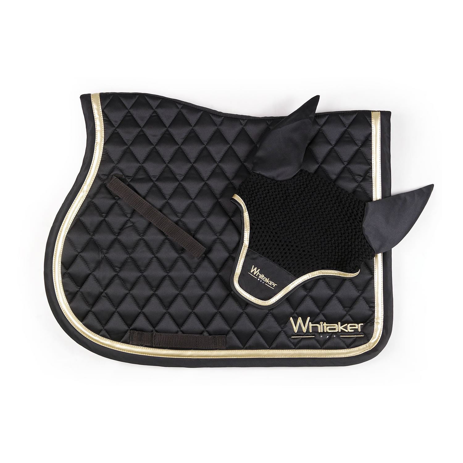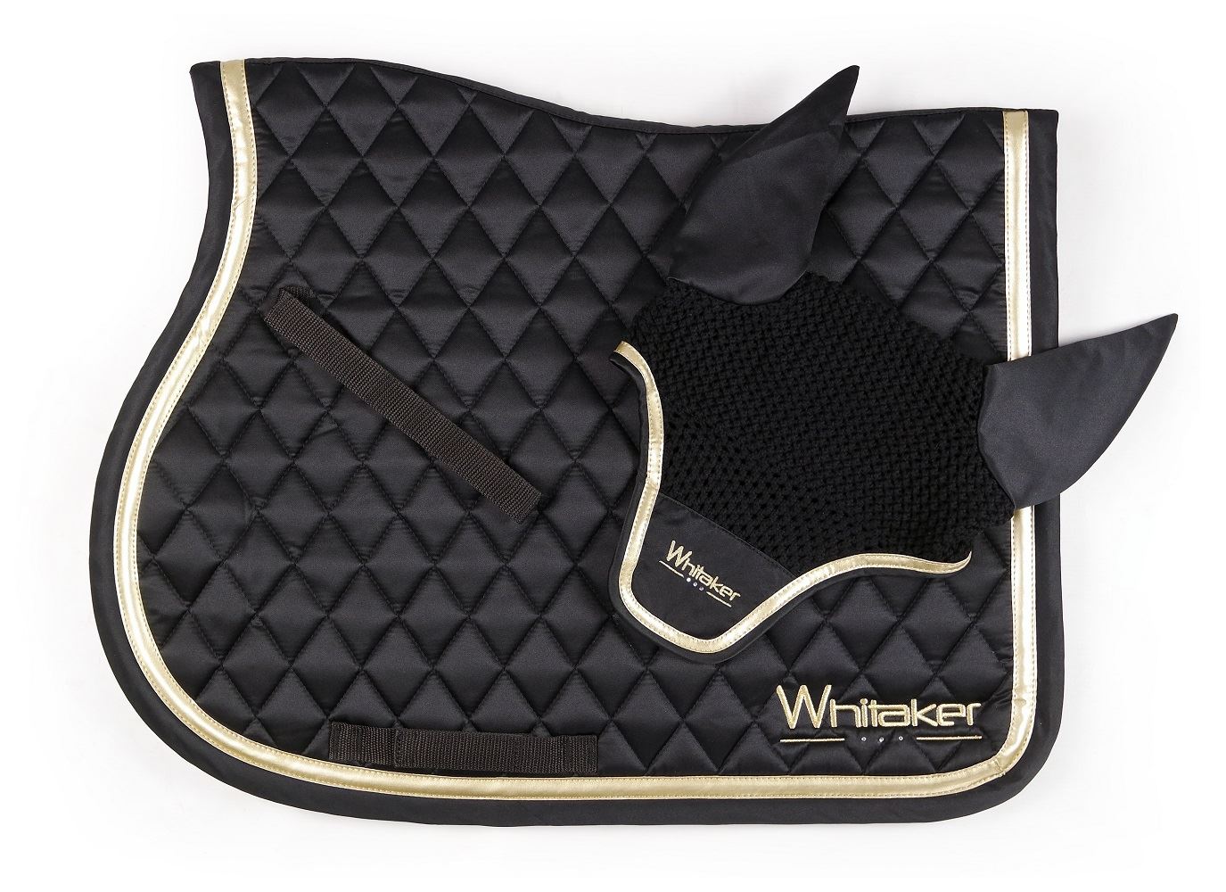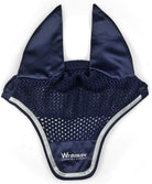 Poly-satin ears with metallic PU binding, 100% cotton crochet cap and squared off peak. Branded metallic embroidery with three diamantes. Matching saddle pad also available.