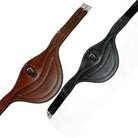 Padded leather, stainless steel buckles, three evenly spaced D-ring attachments, central carabiner with leather cover and thick durable elastic.