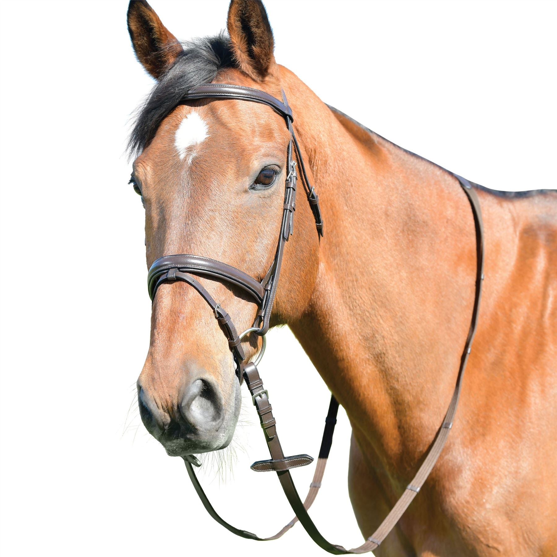 The Kincade Classic Plain Raised Flash Bridle With Reins is a traditional flash bridle featuring classic styling and superior craftsmanship at a budget-friendly price. Suitable for showing and durable enough for everyday use. Featurng a traditional crown with elegantly raised browband and noseband and made with quality Indian leather and highly polished stainless hardware with a removable flash. Available in a wide variety of sizes to fit virtually any horse. Includes matching rubber grip reins for uncompromised contact.