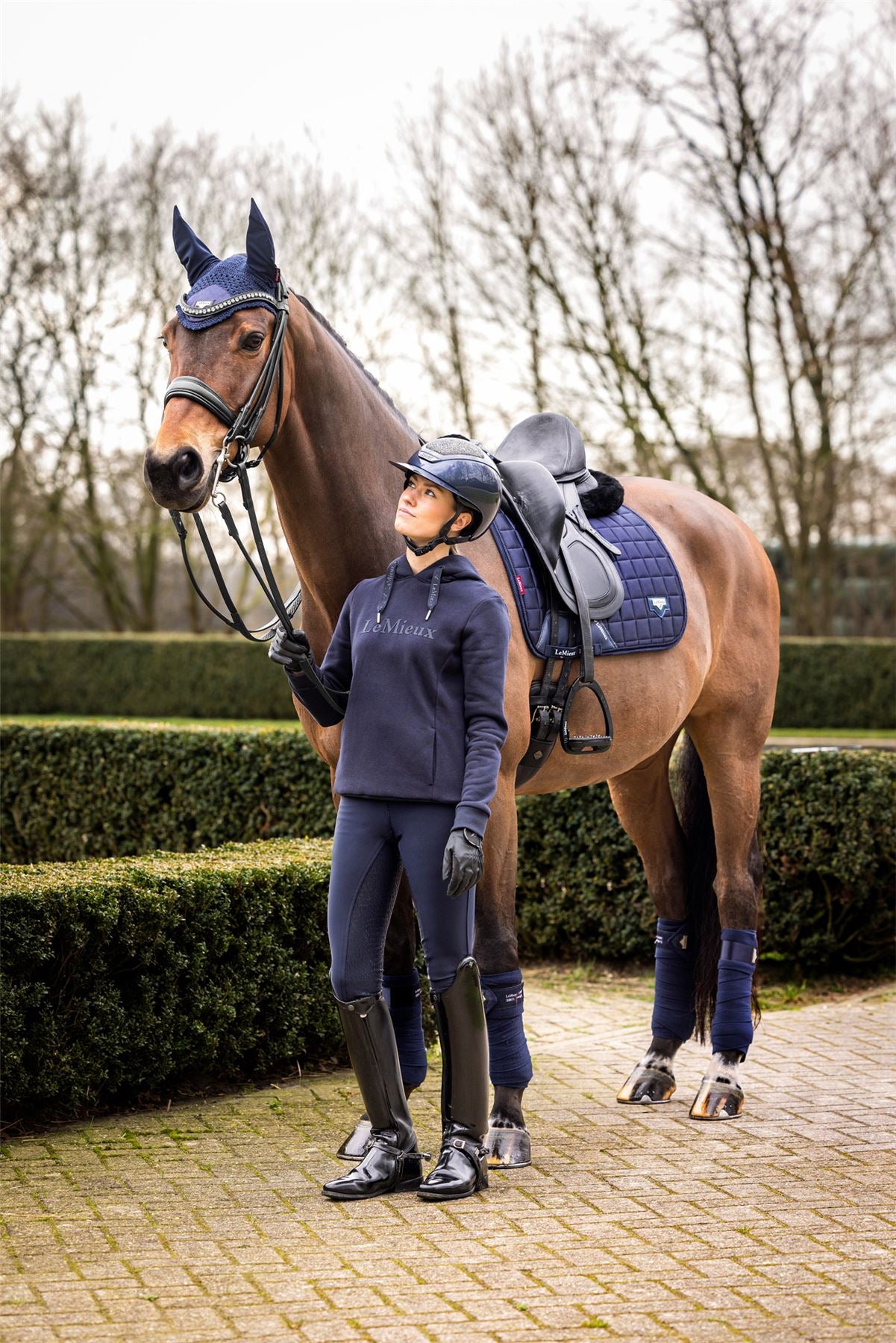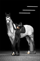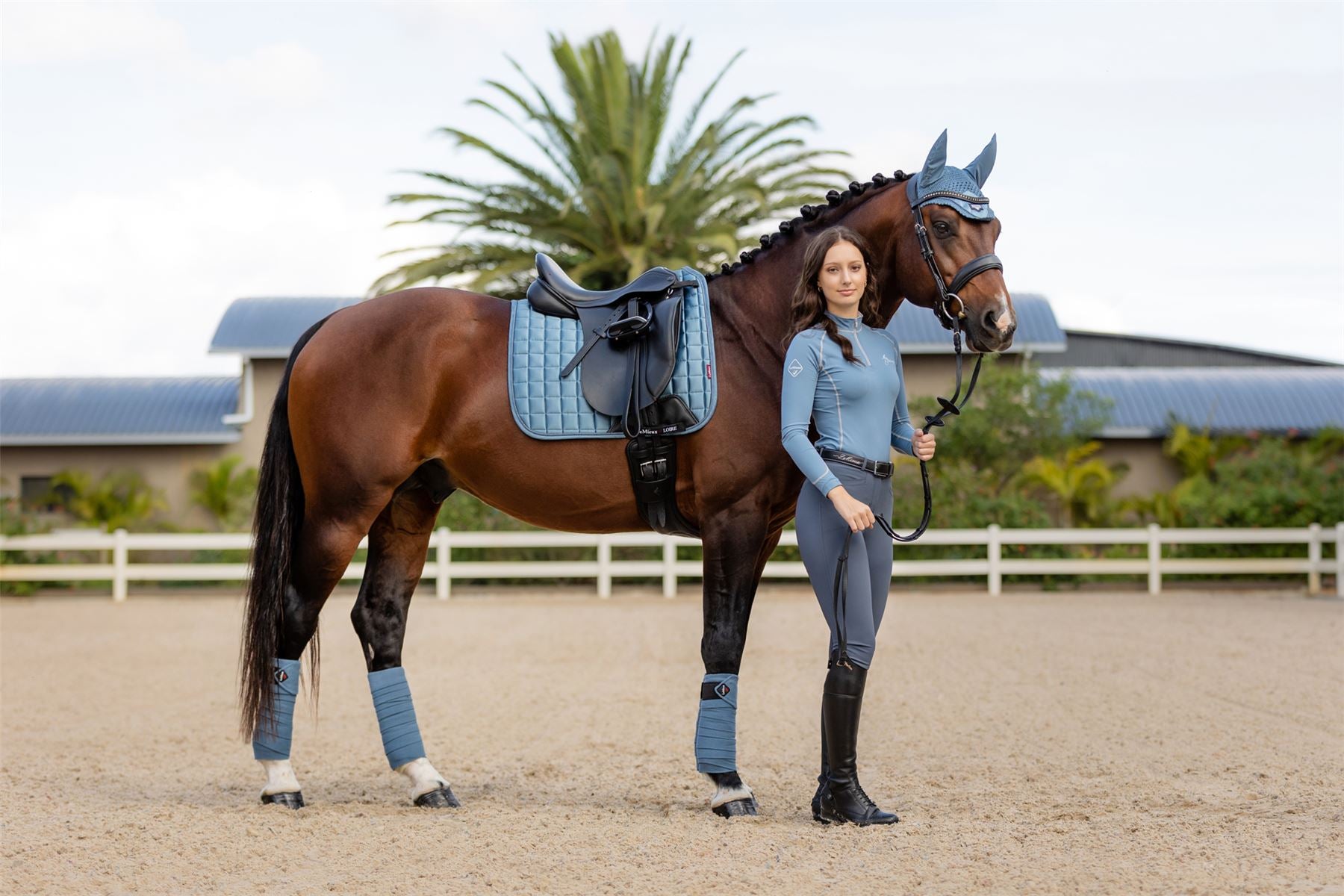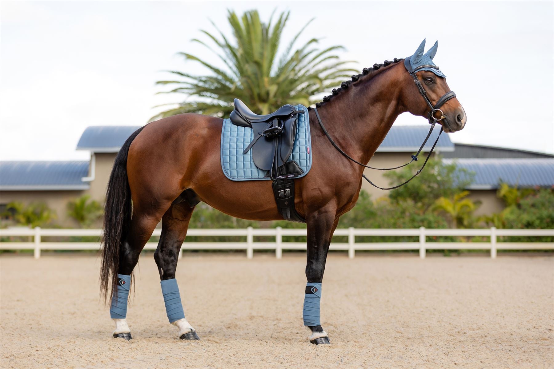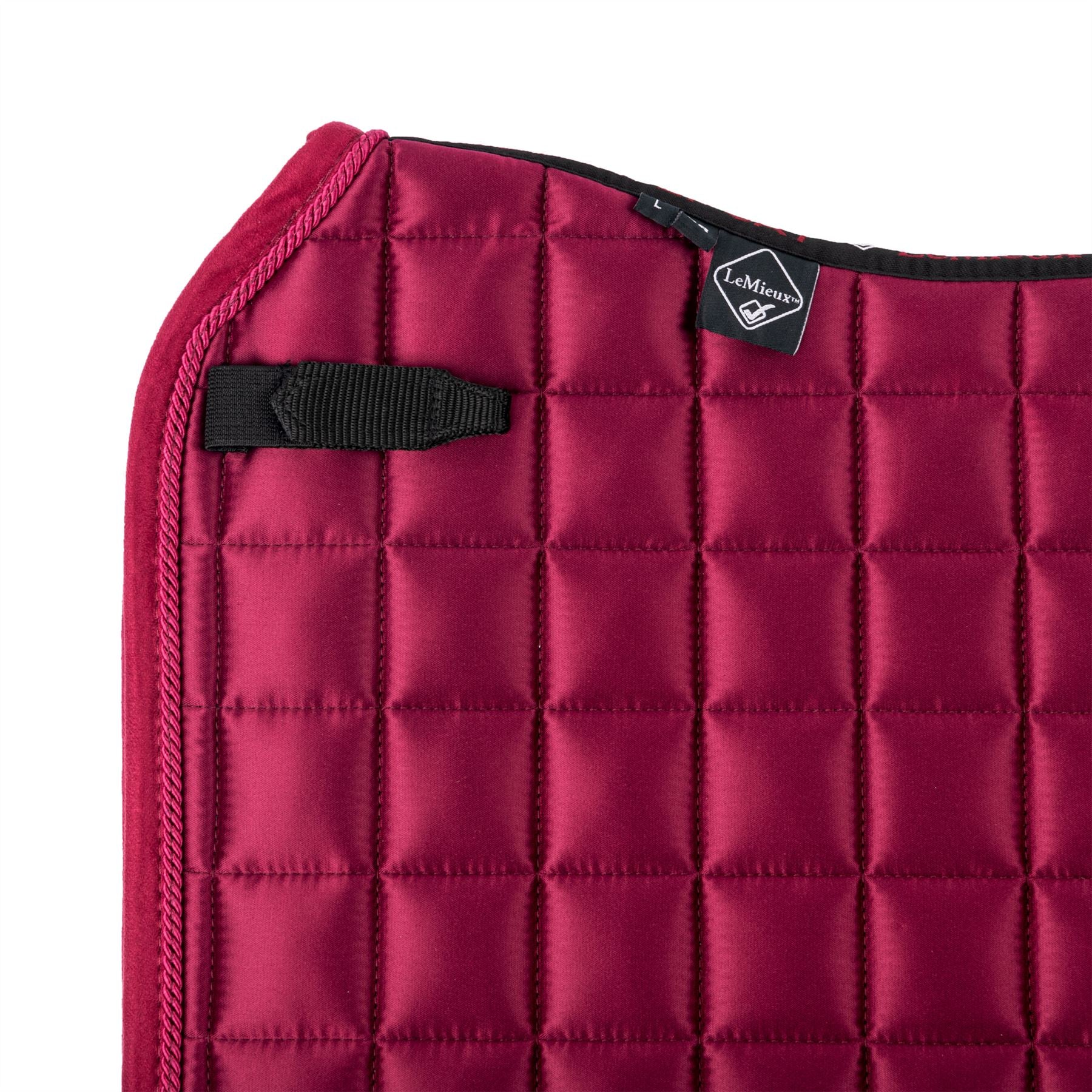 Described as the most stylish dressage pad LeMieux have ever produced. The Loire collection exudes sophistication and class - showing style without showing off! Woven Satin fabric gives a beautiful sheen to these pads whilst still benefitting from the wonderfully soft and breathable Bamboo lining. The 100% natural Bamboo material controls heat & sweat and wicks very efficiently. The whole pad benefits from a new extensively researched soft friction-free suede binding which is specially fabricated to smoothly contour the edges. This new technique helps retain the perfect saddle pad shape and binding profile. The textured PU leather girth protection area is complimented by an embossed logo and carries the usual signature LeMieux lower girth strap with its inner locking loops. The piece de resistance of the Loire Dressage Square is its unique metal badge on a leather mount in the lower back corner.