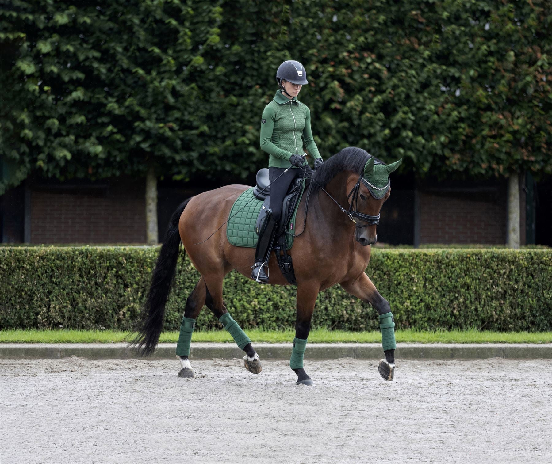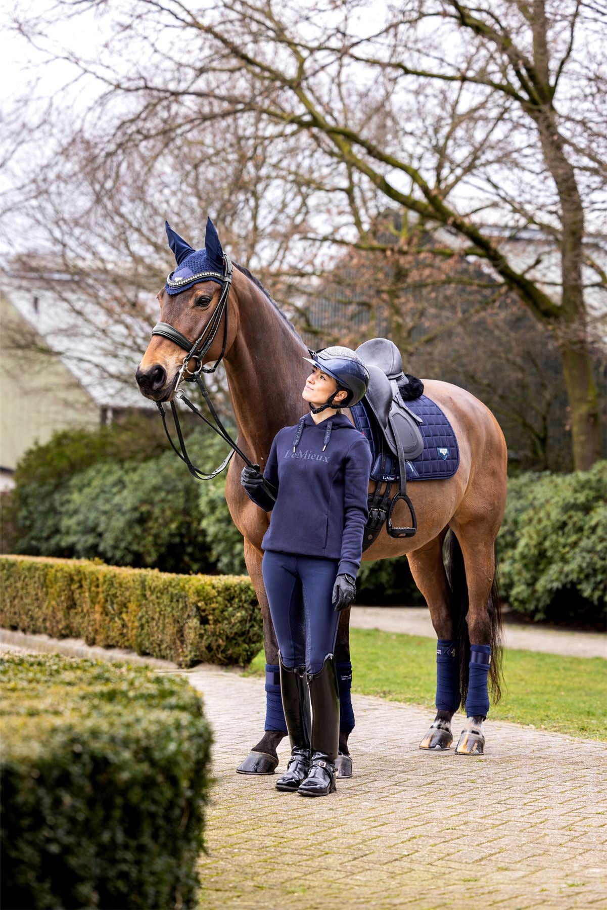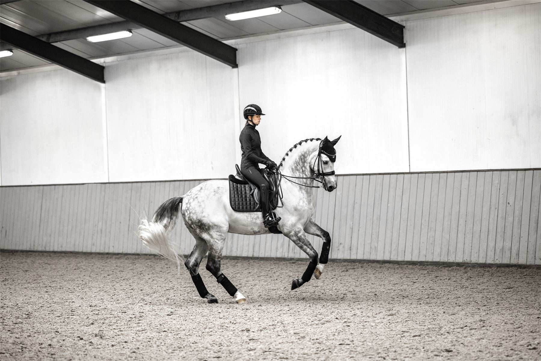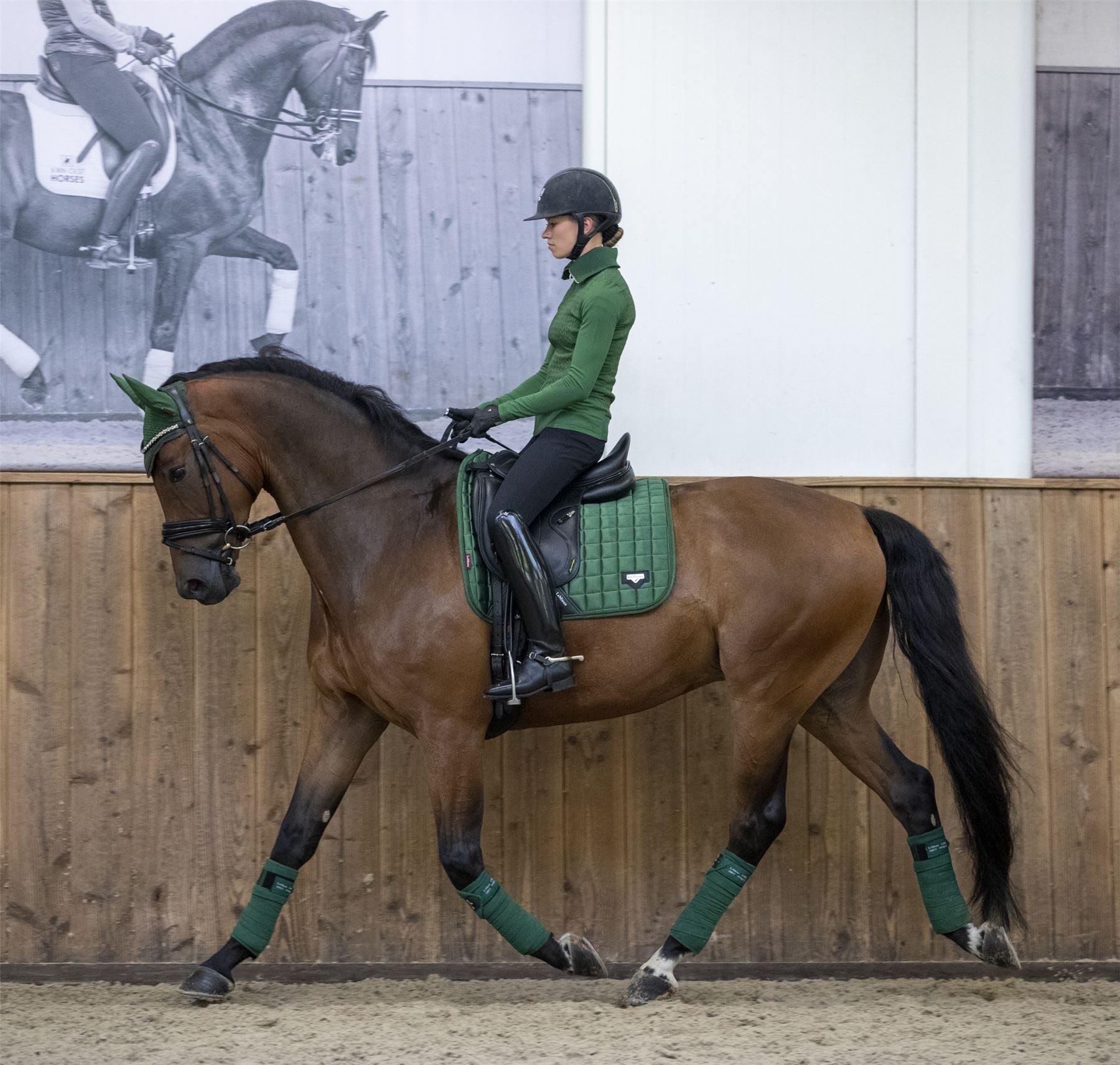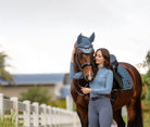 Described as the most stylish dressage pad LeMieux have ever produced. The Loire collection exudes sophistication and class - showing style without showing off! Woven Satin fabric gives a beautiful sheen to these pads whilst still benefitting from the wonderfully soft and breathable Bamboo lining. The 100% natural Bamboo material controls heat & sweat and wicks very efficiently. The whole pad benefits from a new extensively researched soft friction-free suede binding which is specially fabricated to smoothly contour the edges. This new technique helps retain the perfect saddle pad shape and binding profile. The textured PU leather girth protection area is complimented by an embossed logo and carries the usual signature LeMieux lower girth strap with its inner locking loops. The piece de resistance of the Loire Dressage Square is its unique metal badge on a leather mount in the lower back corner.