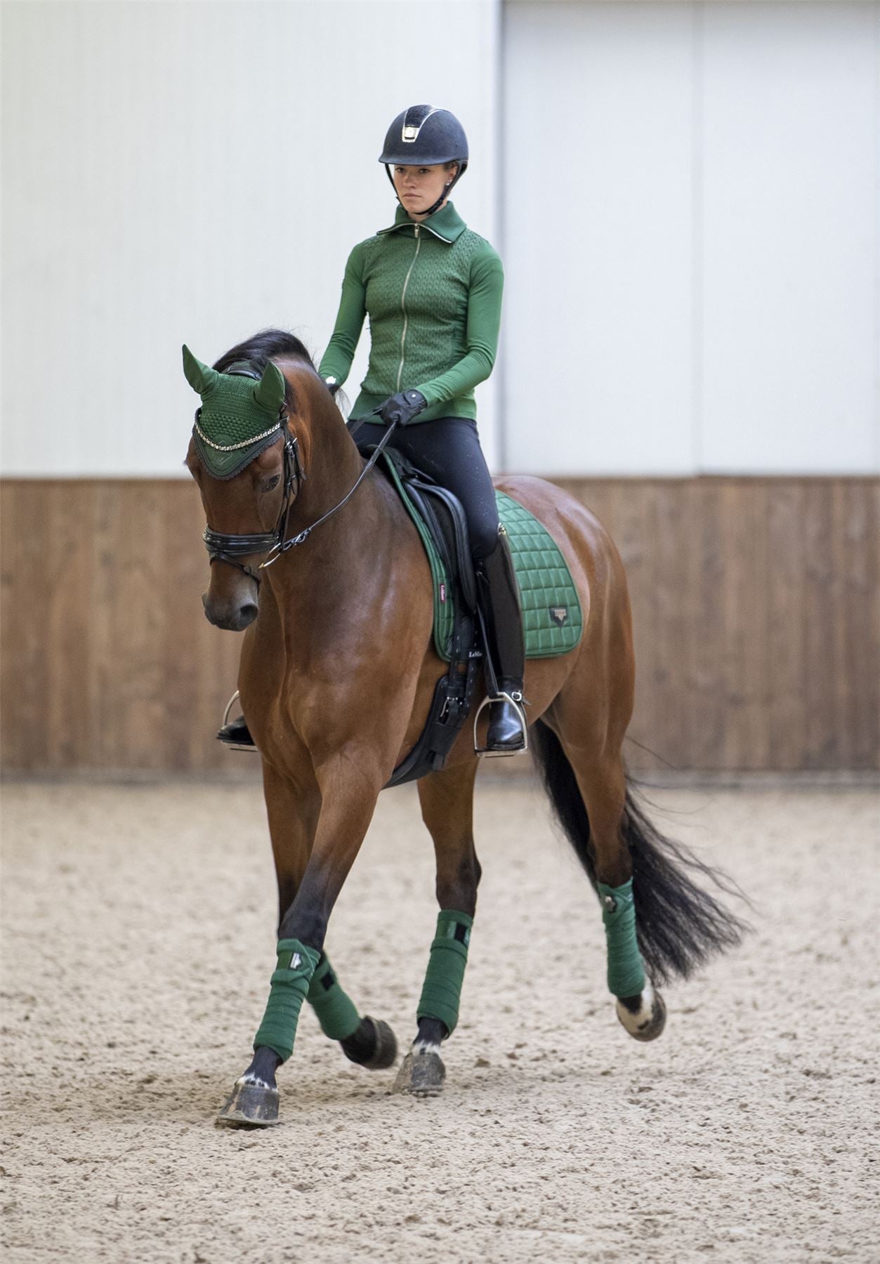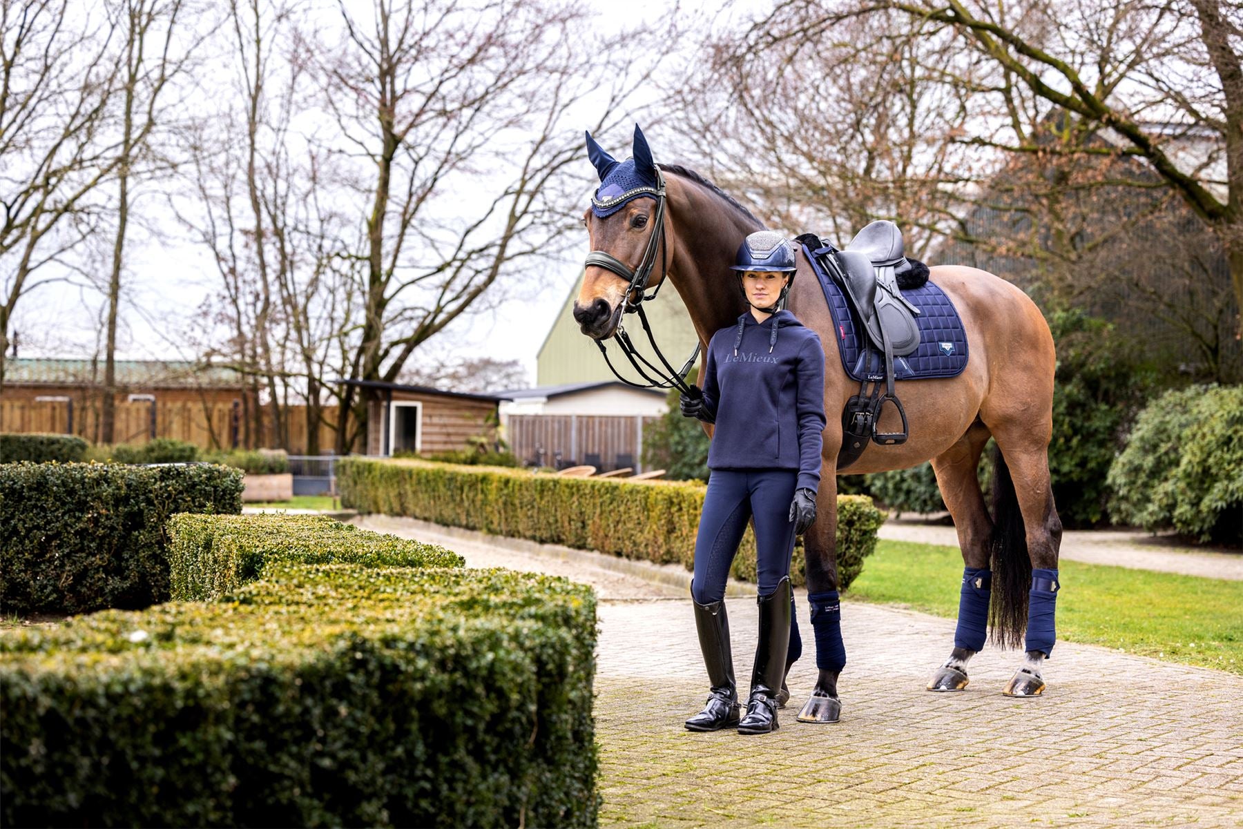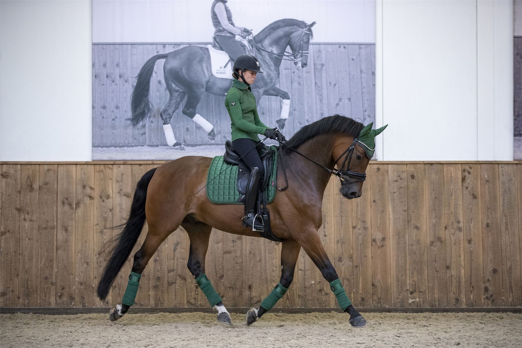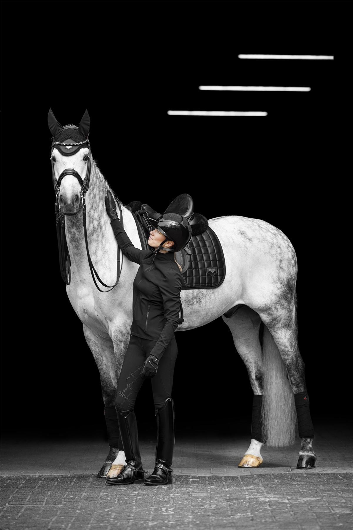Described as the most stylish dressage pad LeMieux have ever produced. The Loire collection exudes sophistication and class - showing style without showing off! Woven Satin fabric gives a beautiful sheen to these pads whilst still benefitting from the wonderfully soft and breathable Bamboo lining. The 100% natural Bamboo material controls heat & sweat and wicks very efficiently. The whole pad benefits from a new extensively researched soft friction-free suede binding which is specially fabricated to smoothly contour the edges. This new technique helps retain the perfect saddle pad shape and binding profile. The textured PU leather girth protection area is complimented by an embossed logo and carries the usual signature LeMieux lower girth strap with its inner locking loops. The piece de resistance of the Loire Dressage Square is its unique metal badge on a leather mount in the lower back corner.