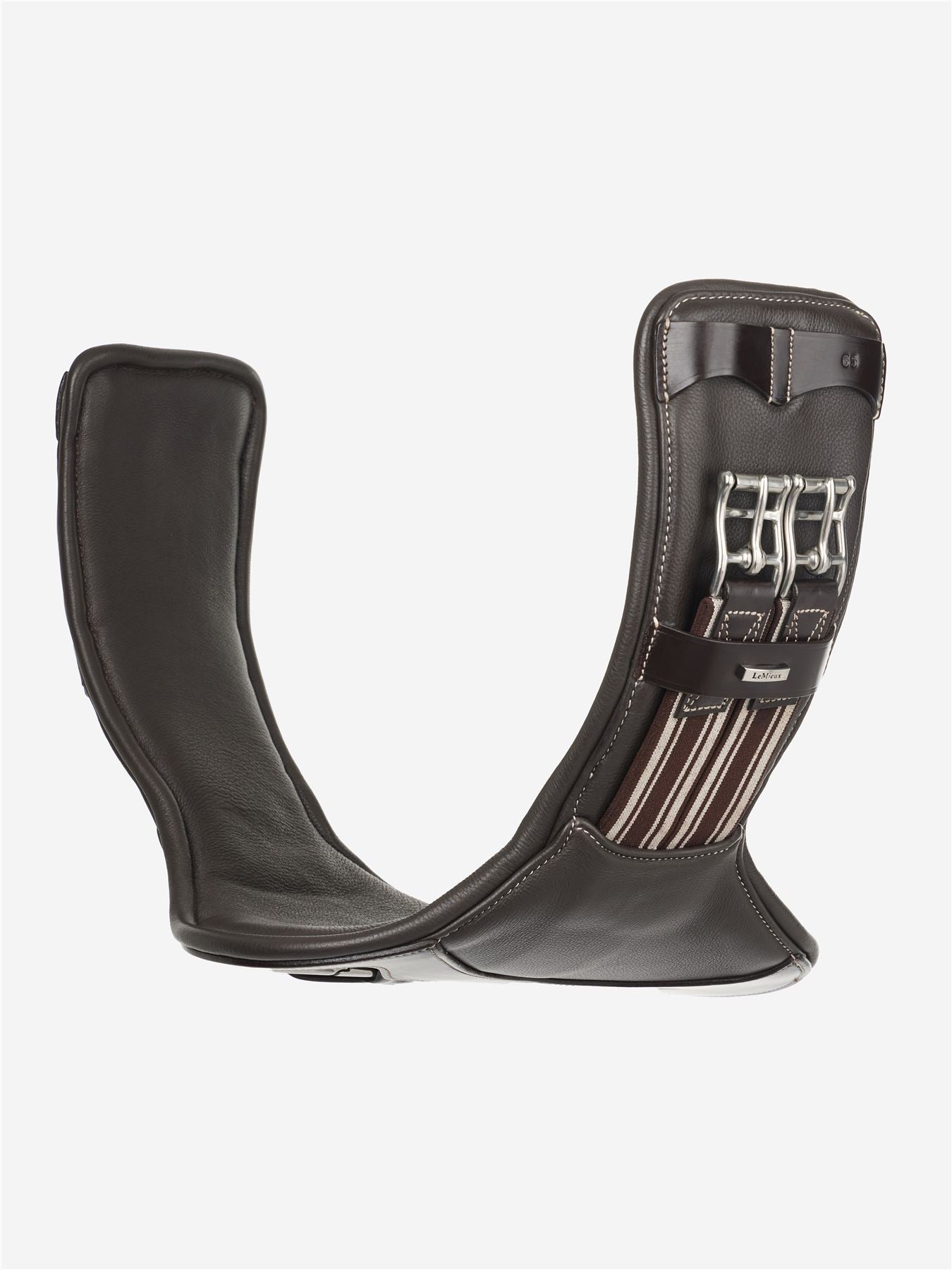 Made from soft, supple leather, this stud girth is designed with a tough leather pad to protect your horse's underside when jumping. The D-rings allow for the easy attachment of training aids, enhancing the product's versatility. The central carabiner clip also has a cross-over leather base cover for a stylish finish. Not only does it prevent the saddle from slipping, but the anatomical shaping allows for comfort and freedom of the elbows. Plus, the slightly elasticated straps allow for slight flexibility without affecting saddle stability. For your horse's comfort, the ultra-soft leather construction absorbs pressure evenly across the surface area of the girth. It's easy to clean, breathable, cushioning and great for sensitive-skinned horses.