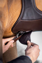 This anatomic high performance girth comes with gel cushioning that maximises comfort and allows the muscles to move freely. The anatomically shaped Gel-Tek Anatomic Long Stud Girth is designed to provide maximum comfort and protection to the horse during riding. It features gel impregnated pockets on the leading edge that allow the muscles to move freely, resulting in improved stride and less restricted movement of the front legs. The girth also has thinner, tapered ends that evenly distribute pressure at the edge, preventing chafing and ensuring the horse's comfort. To enhance protection, the girth features a low profile strike area that shields the horse from studs. The girth is also equipped with an integrated clip for easy attachment of draw reins, breastplates or martingales. D-rings allow for optional attachments, while a magnetic flap provides a neat finish to the integrated clip. The girth is secured with large hook & loop straps that protect the girth straps and ensure a secure fit. Overall, this girth is a practical and comfortable option for horses and riders who prioritise protection and mobility during riding.