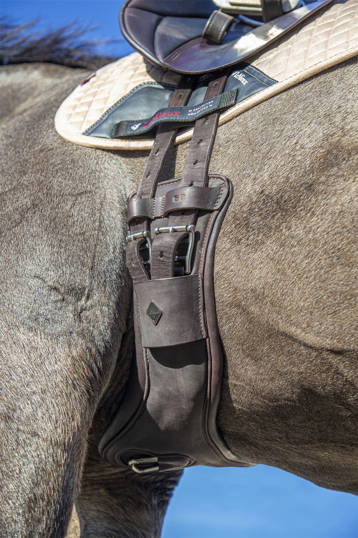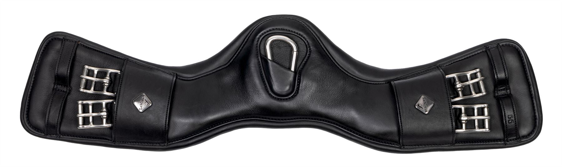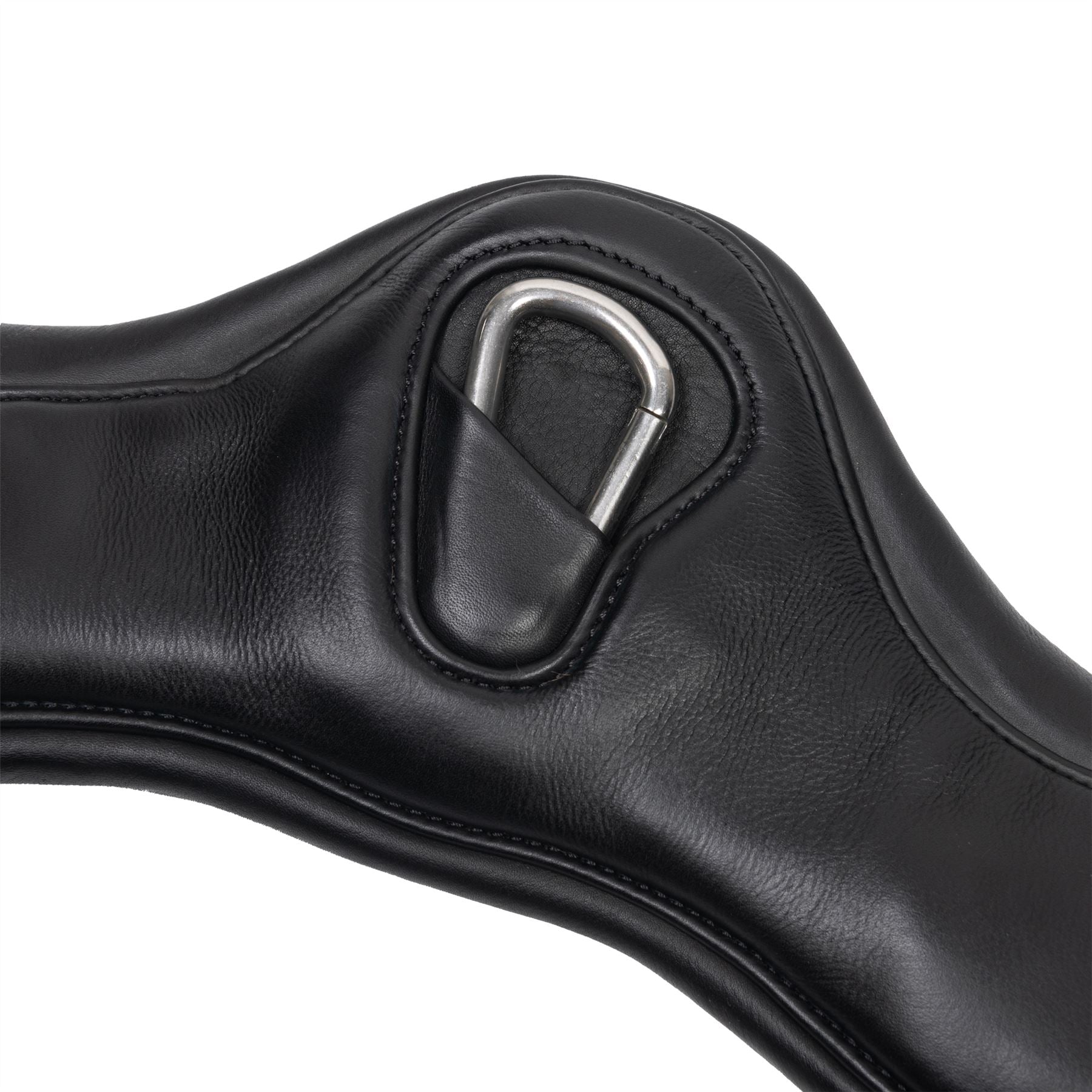 Anatomic high performance girth that maximises comfort Gel impregnated pockets on leading edge of girth allow muscle to move freely without restriction & sensation of blocking Combination of dynamic gel & ultra soft oiled leather absorbs and spreads pressure evenly across the surface area of the girth Contoured shape allows maximum freedom & space behind the elbow Scalloped shaped ends even pressure under the buckles, which are splayed and set at a slight angle Allows less restricted movement of the front legs and can improve stride length Enhances saddle stability and eliminates discomfort & rubbing A minute degree of elastication is built into each buckle attachment - just enough for flexibility without effecting saddle fit or girth tension Integrated clip for easy draw rein, breast plate or martingale attachment