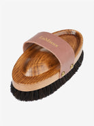 Made from 100% natural lambskin, this body brush provides a comfortable yet efficient clean with every groom. The outer ring of natural and synthetic bristles ensures a high-shine finish, while the ergonomic wooden handle provides a comfortable, secure grip. For an extra touch of sophisticated LeMieux style, we've added gold foil debossed branding to the soft leather strap.