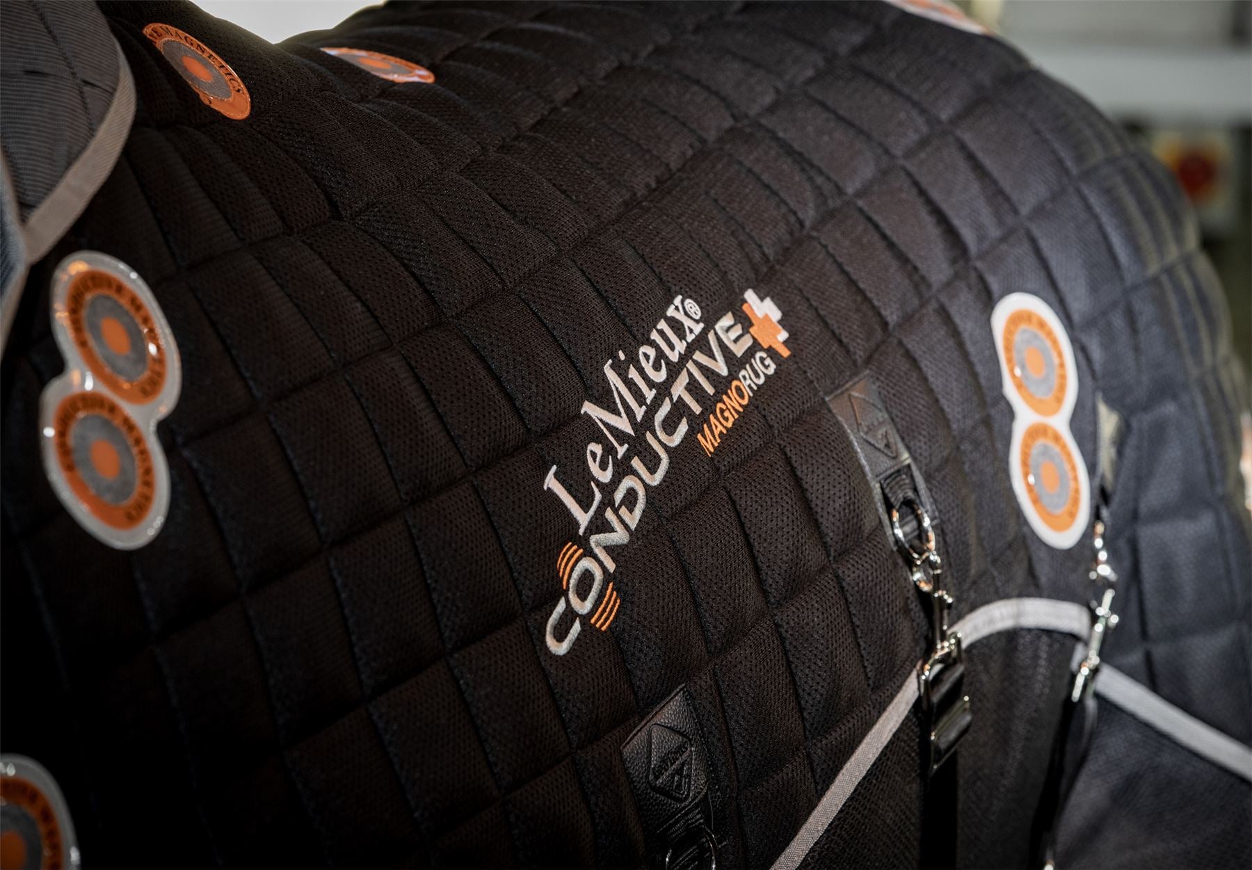 The LeMieux Conductive Magno Rug herald a new approach to magnetic therapy. Unique inner liners contain a woven layer of steel fibres directly under powerful 2600 Gauss twin magnets which are strategically placed over 5 key areas: Shoulder Elbow Hip Stifle Second thigh There are additional pairs of magnets aligned either side of the spine. The steel filaments conduct magnetic waves evenly around the lining, bringing the whole upper body within the magnetic field. Breathable 3D Mesh top side releases any heat build up from the magnets, while the lightweight mesh of the lower section encourages the air flow up. The 3-way adjustable belly straps ensure a close secure fit for maximum magnetic effect. Acknowledged benefits of using magnets include: Helps blood supply to tendons & joints pre-exercise. Aids recovery and detrimental effects of exercise and fatigue. Oxygen supply to tissue. Production of elastin & collagen essential for development of new cells. Helps with the effects of concussion from hard ground or extreme exercise.