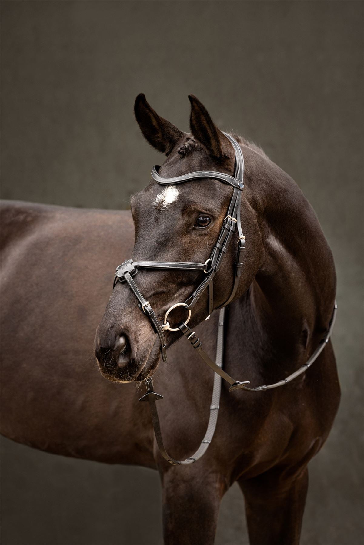 Designed to be worn higher on your horse's nose, the Arika Grackle Bridle is the ideal shape and cut for hard-working horses. Made from soft and supple oiled leather, the Arika Grackle Bridle is sleek, stylish and carefully crafted for your horse's comfort. It features a shaped padded headpiece, lightly padded anatomical browband, and a removable wool pad on the nosepiece that prevents pinching. A D-ring joins the noseband and cheek pieces, allowing the it to sit smoothly against the horse's cheeks and jaw. This helps to provide a tailored fit for different jaw shapes and the back strap can move independently. Available in Havana Brown with Silver fittings and also Black with Silver fittings. Reins sold separately.