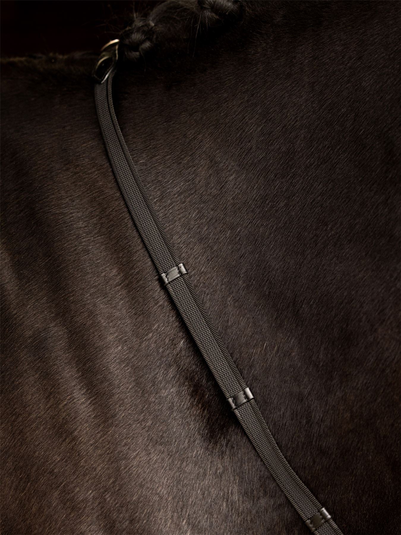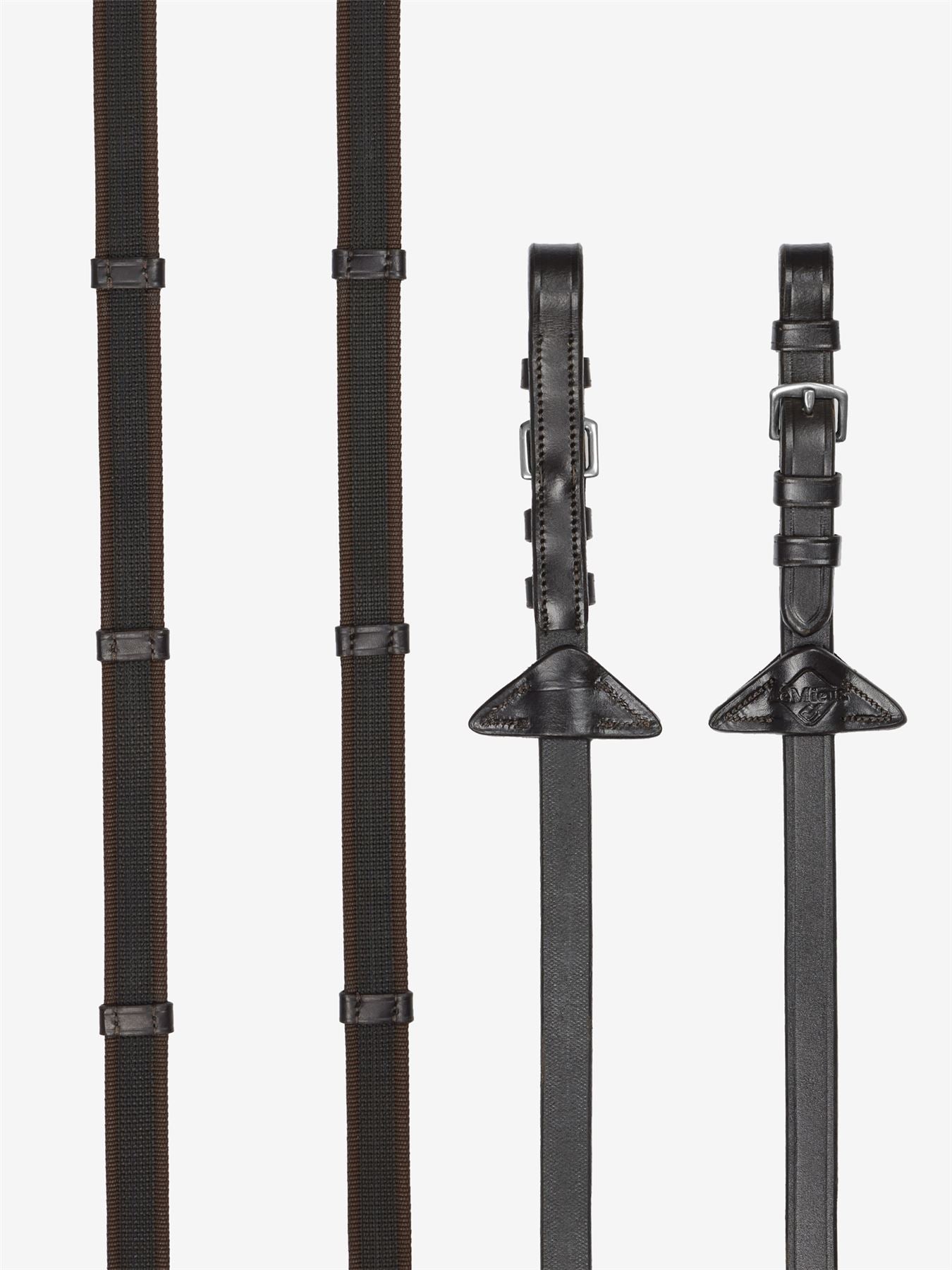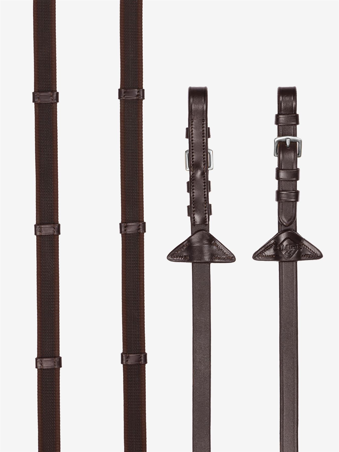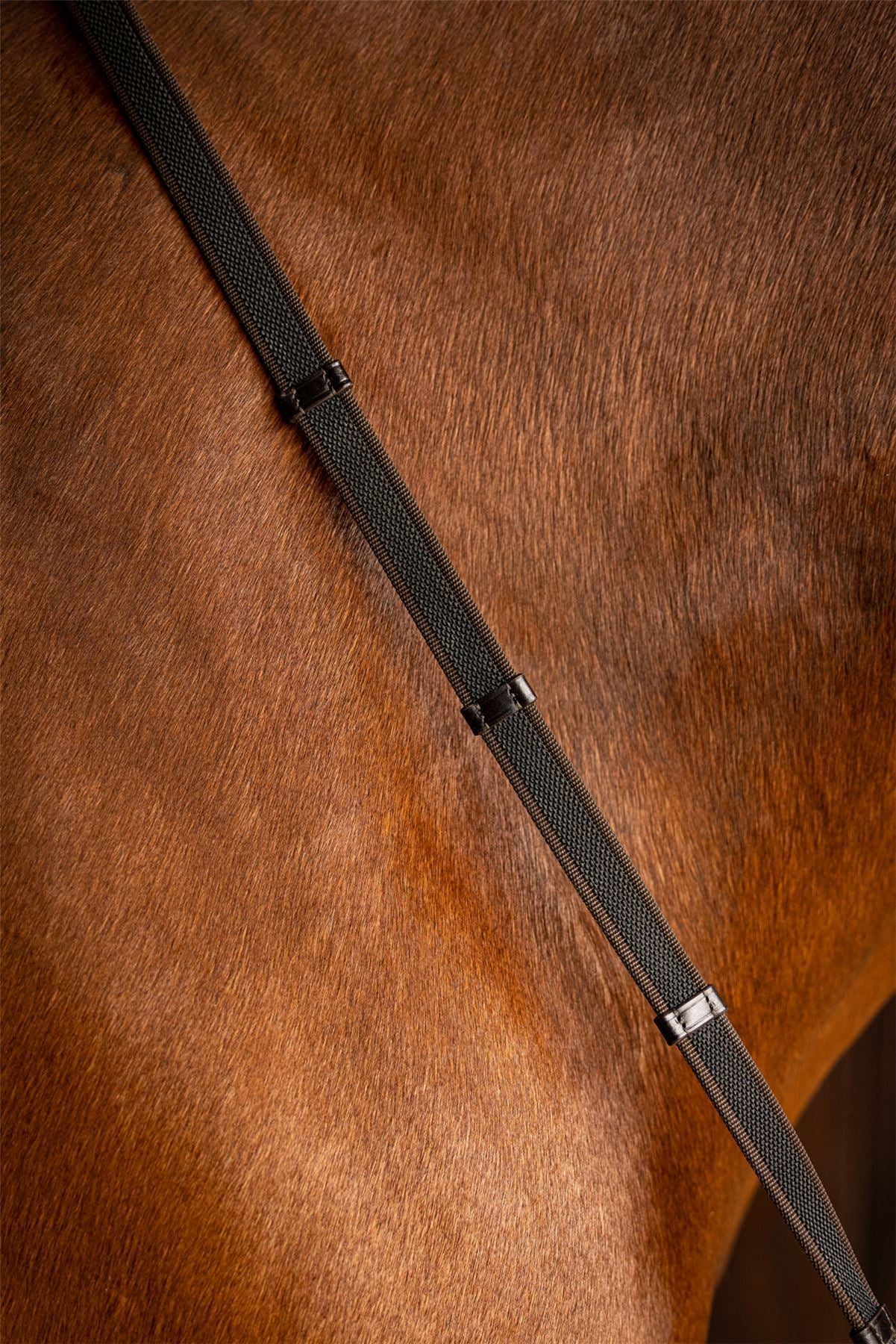 Whatever your riding style, our Rubber Grip Continental Reins have a texture that provides exceptional grip. The practical Rubber Grip Continental Reins from LeMieux have a light grip, low profile feel that's designed to suit any rider. Optimum spacing between the stoppers, allows for a consistent contact. The anti-slip texture provides additional grip in all weather conditions - including rainy days. There's also a nylon lining to prevent stretching. These reins are available in Black/Silver, Brown/Brass, Brown/Silver, Havana/Brass and Havana/Silver.