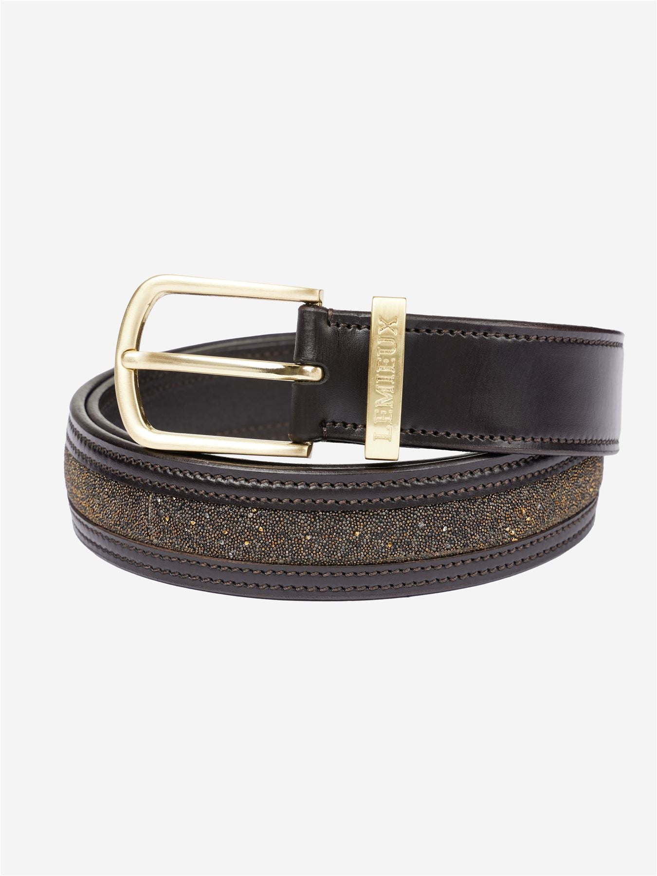 A stylish and sophisticated way to keep your breeches in place and finish your outfit off, this beautifully crafted, premium leather belt is inlaid with a tonal crystal panel. A satin-brushed buckle and keeper and raised LeMieux lettering complete the high-quality feel of this elevated accessory.