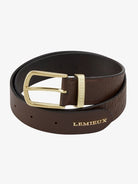 This 100% leather belt is a soft, supple and premium accessory to finish off your riding gear. Finished with a satin brushed metal buckle and keeper, it's enhanced by a statement LeMieux debossed print and raised metal lettering, adding plenty of style to your favourite riding outfits.