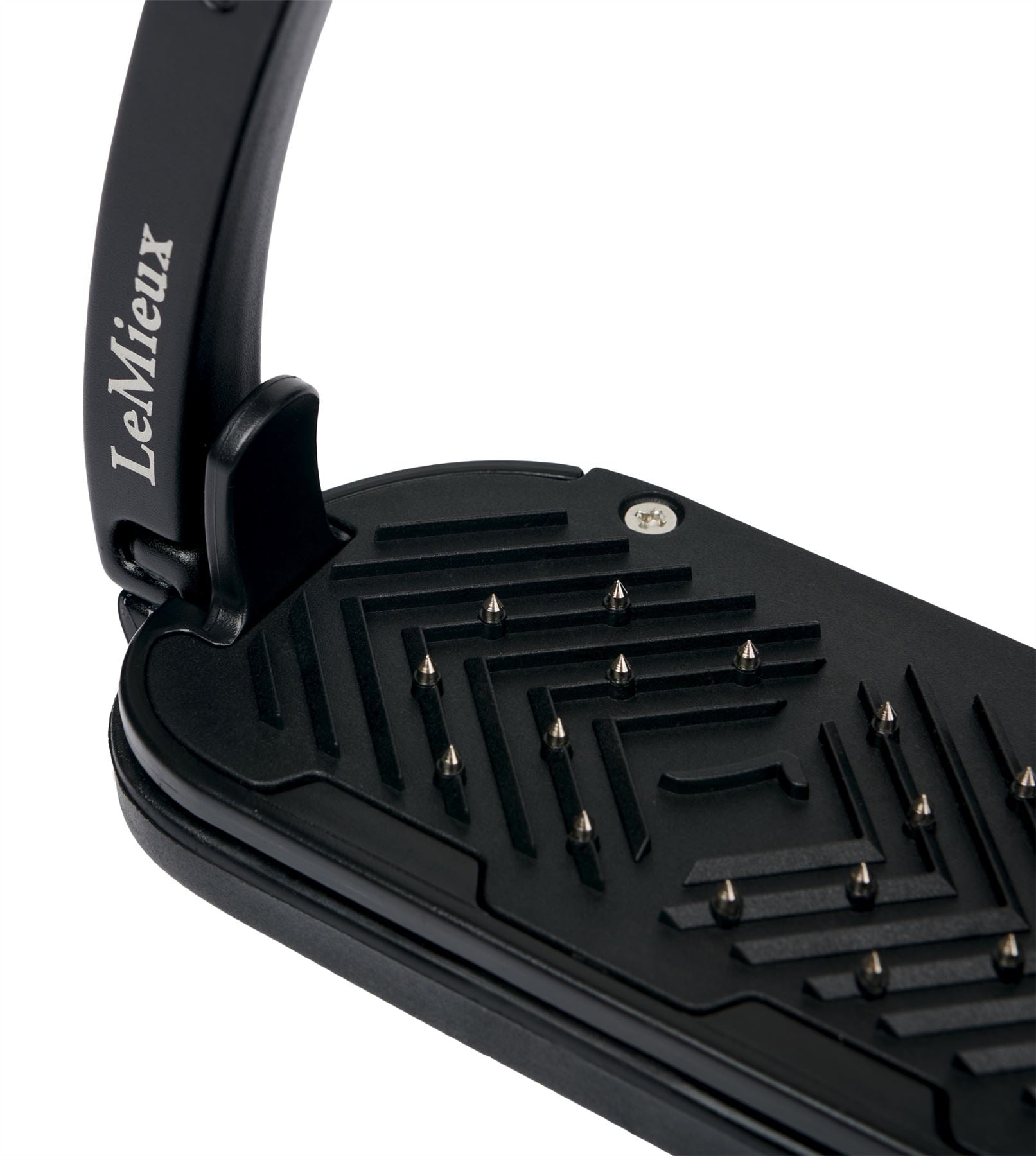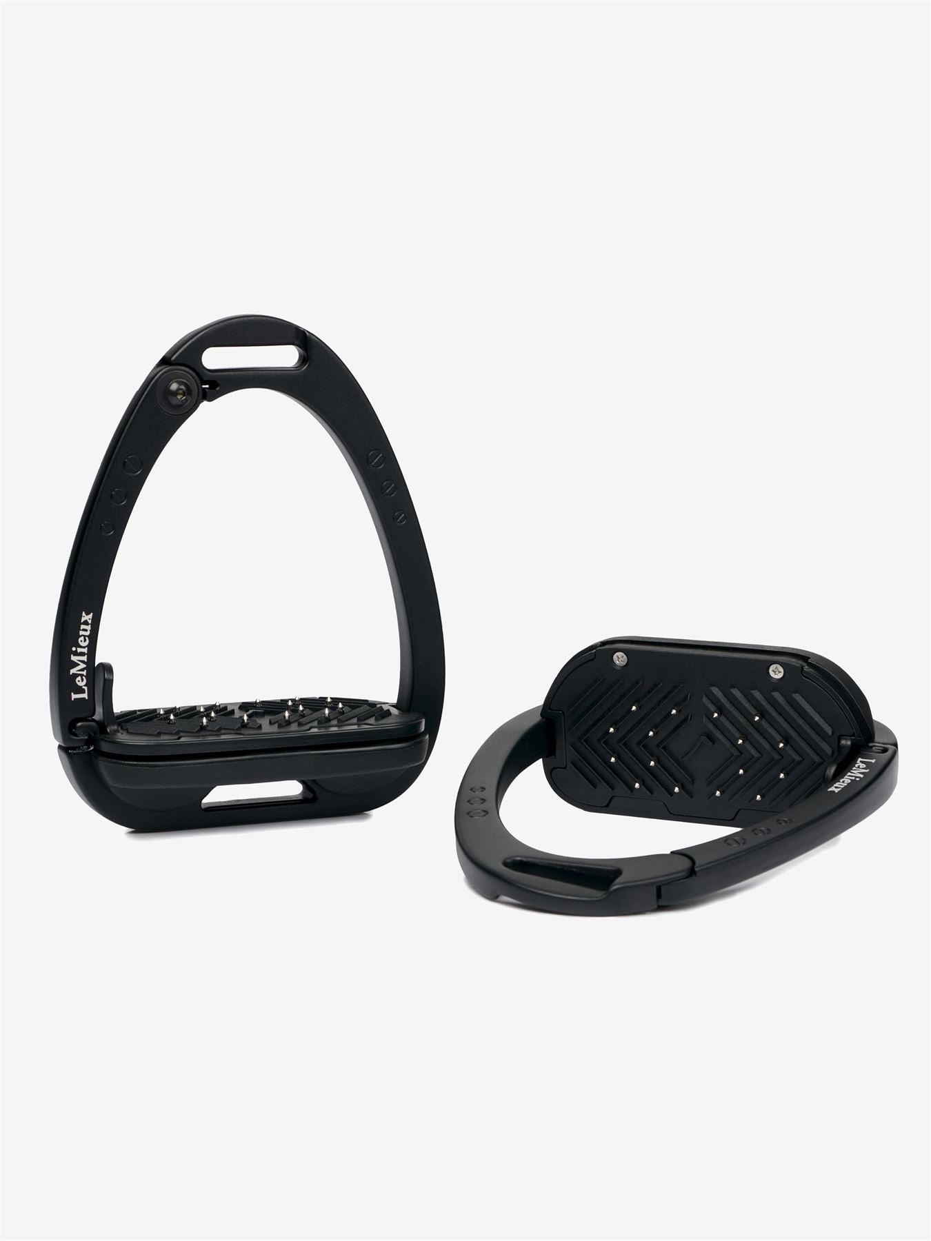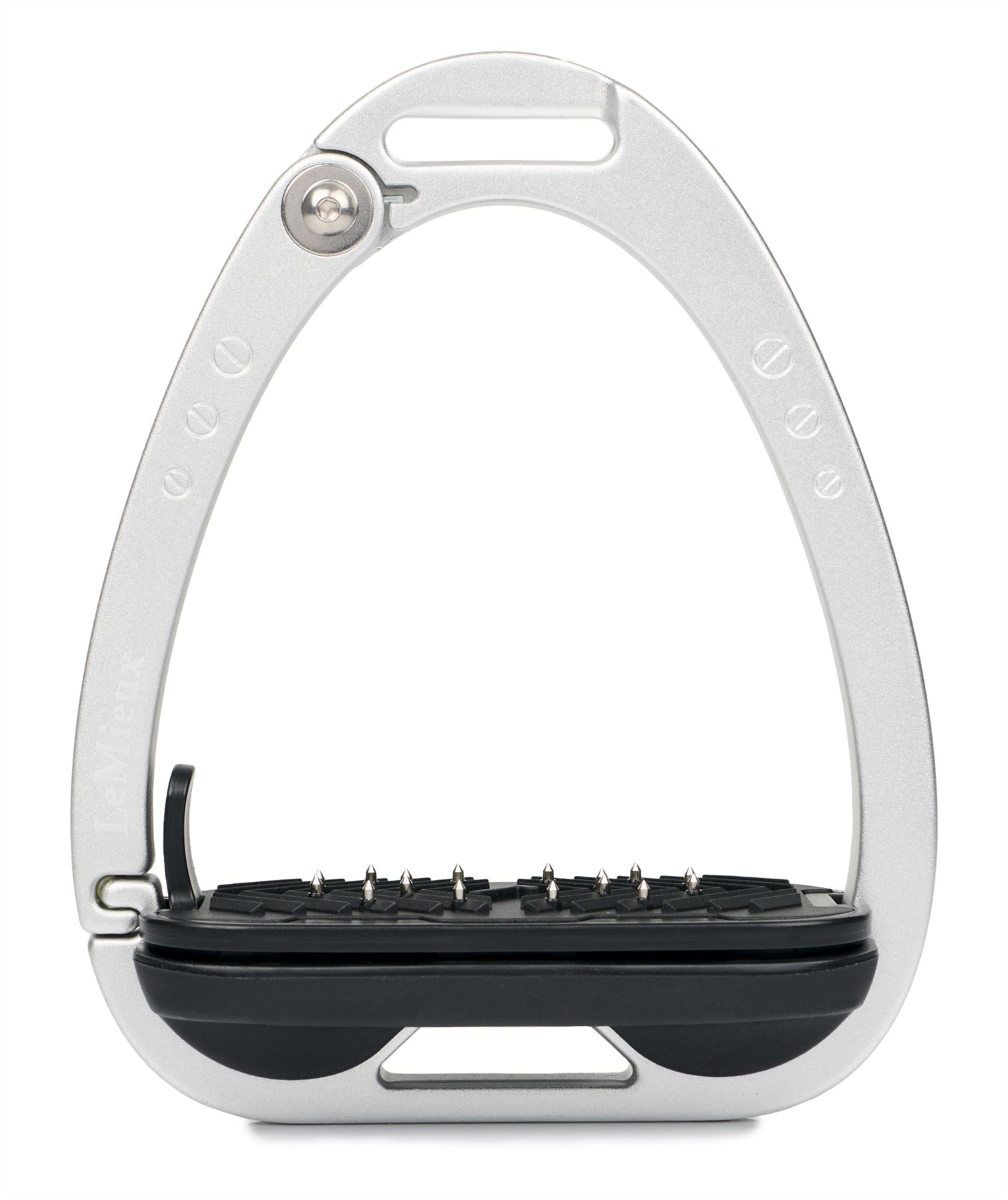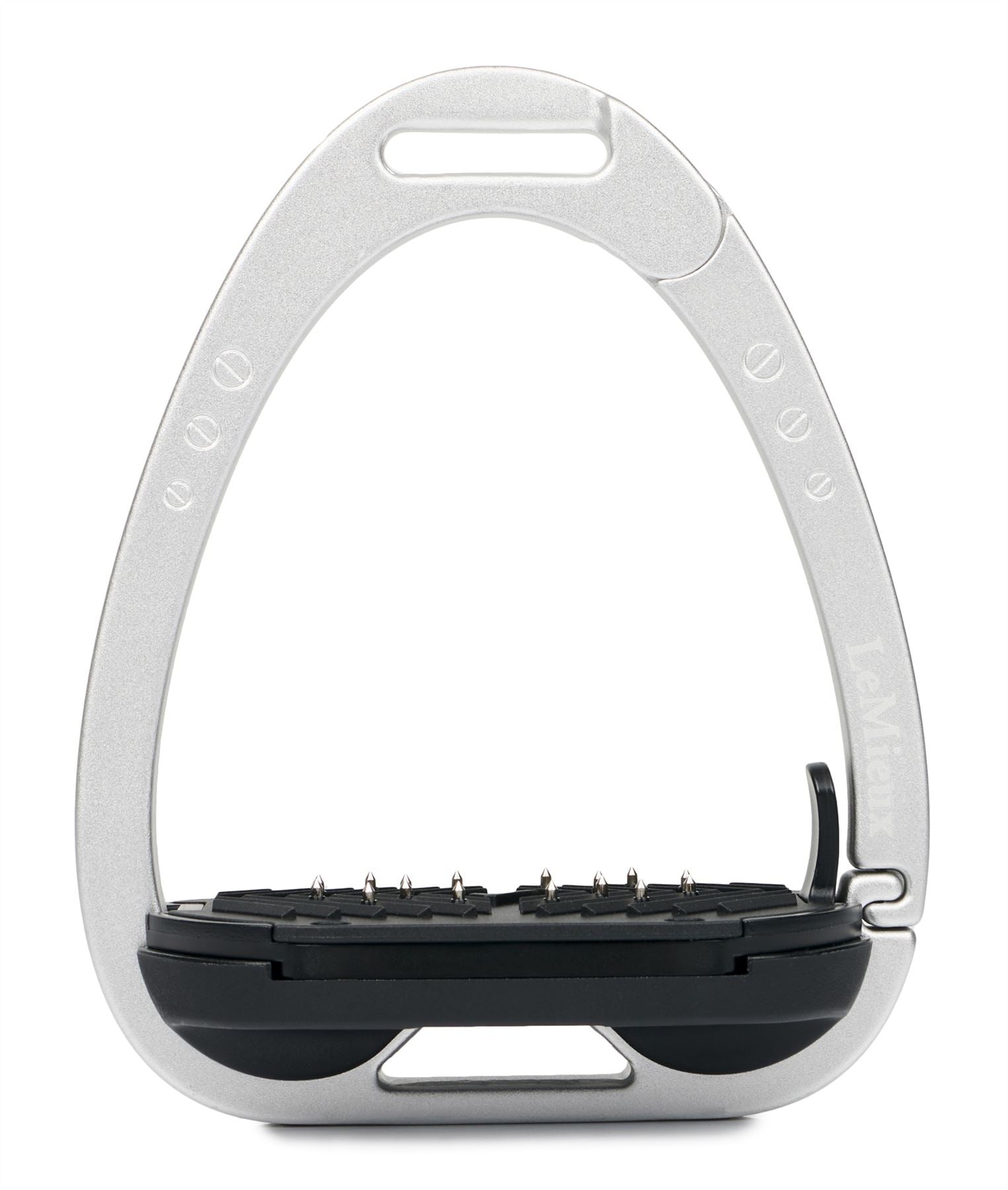 The LeMieux Vector stirrups are a new generation of stirrup - technically advanced and lightweight, but retaining a classic style expected from LeMieux. Machined from aviation grade aluminium offers an impressive strength to weight ration, making them lighter than most stirrups on the market at just 419g each, whilst not compromising on stability. The ergonomic footplate of the Control Stirrup is set at 0 degrees with a cross-track grip surface with embedded hardened steel pins to provide maximum security of the boot. The footplate is supported by a twin balance arch system that distributes the weight evenly across the base of the stirrup frame. The apex of the frame is recessed and off-set, encouraging a 45� outward orientation which makes it easier for the rider to locate the optimum angle for the foot and regain a lost stirrup. An integrated hinged arm has a two-stage release system, preventing unintentional opening. The spring loaded arm locks into the base of the main frame meaning that when under maximum pressure, such as landing over a fence, the rider's weight is spread evenly across the stirrup, preventing the outside dropping and flexing. When pressure is put onto the arm of the stirrup, the arm releases allowing the foot to come out of the stirrup and minimising the risk of it getting stuck. The stirrup arm breakout force = 36N (equivalent to 3.62kg) in testing meaning enough resistance to stop it opening unintentionally, but will release when needed. It is important to note that no stirrup of this design (with a quick release arm) is 100% guaranteed to open in the event of a fall. There are several factors, such as a fall of the horse, a loose girth causing saddle to slip and a slow or unusual angle of exit that may not generate enough lateral force to open the release arm. This is very rare but users must be aware that no stirrup is completely fool proof in every eventuality. Competition Legal (FEI, British Dressage, British Eventing and British Showjumping)