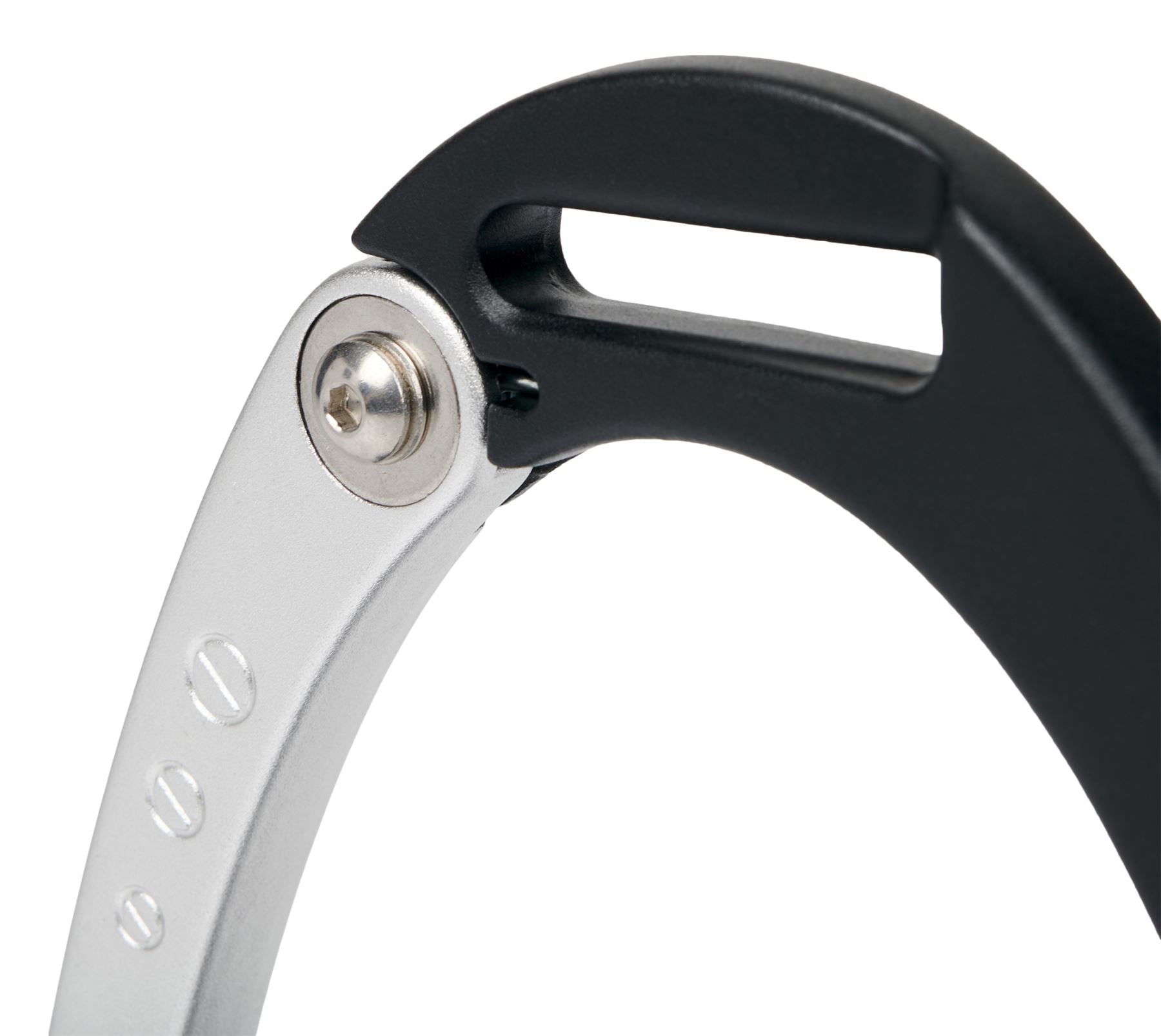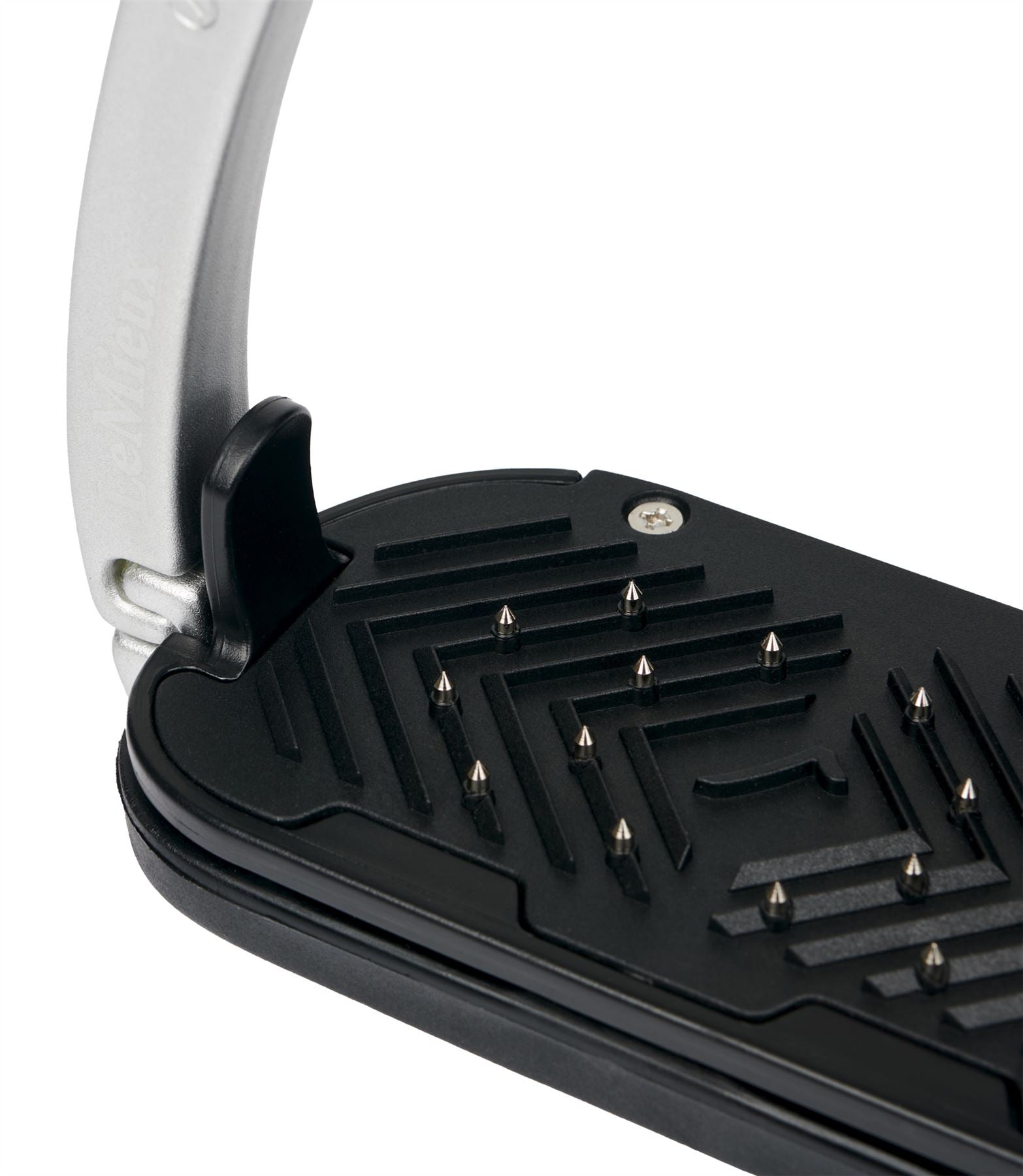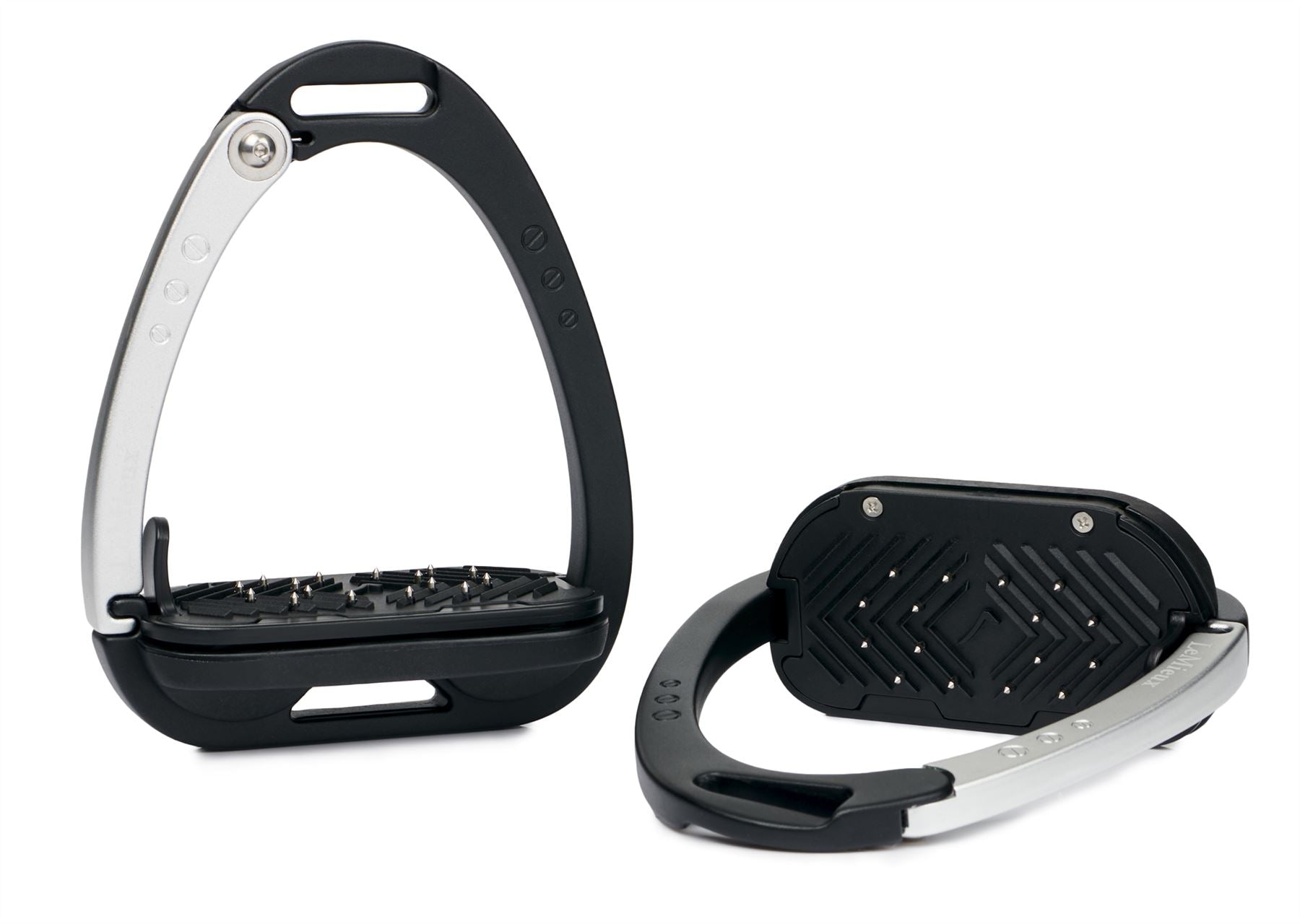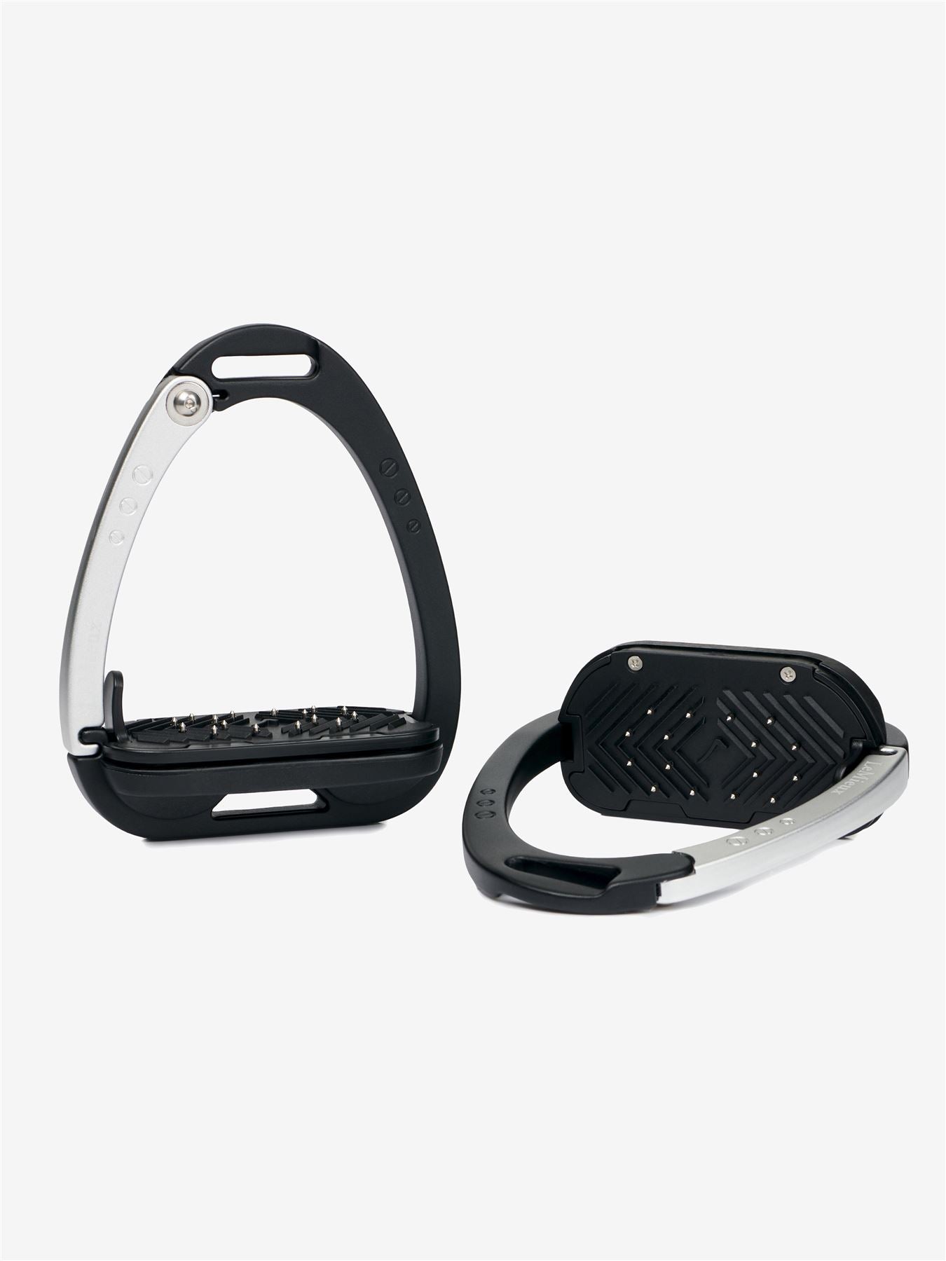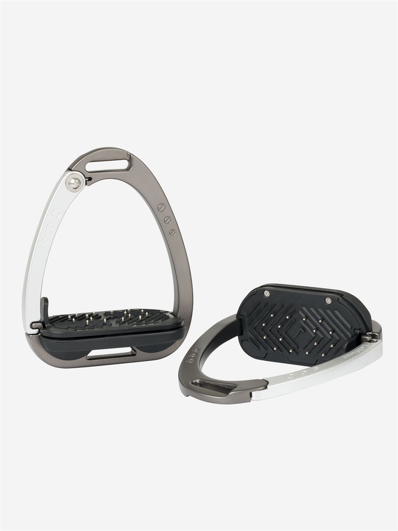 The LeMieux Vector stirrups are a new generation of stirrup - technically advanced and lightweight, but retaining a classic style expected from LeMieux. Machined from aviation grade aluminium offers an impressive strength to weight ration, making them lighter than most stirrups on the market at just 419g each, whilst not compromising on stability. The ergonomic footplate of the Control Stirrup is set at 0 degrees with a cross-track grip surface with embedded hardened steel pins to provide maximum security of the boot. The footplate is supported by a twin balance arch system that distributes the weight evenly across the base of the stirrup frame. The apex of the frame is recessed and off-set, encouraging a 45� outward orientation which makes it easier for the rider to locate the optimum angle for the foot and regain a lost stirrup. An integrated hinged arm has a two-stage release system, preventing unintentional opening. The spring loaded arm locks into the base of the main frame meaning that when under maximum pressure, such as landing over a fence, the rider's weight is spread evenly across the stirrup, preventing the outside dropping and flexing. When pressure is put onto the arm of the stirrup, the arm releases allowing the foot to come out of the stirrup and minimising the risk of it getting stuck. The stirrup arm breakout force = 36N (equivalent to 3.62kg) in testing meaning enough resistance to stop it opening unintentionally, but will release when needed. It is important to note that no stirrup of this design (with a quick release arm) is 100% guaranteed to open in the event of a fall. There are several factors, such as a fall of the horse, a loose girth causing saddle to slip and a slow or unusual angle of exit that may not generate enough lateral force to open the release arm. This is very rare but users must be aware that no stirrup is completely fool proof in every eventuality. Competition Legal (FEI, British Dressage, British Eventing and British Showjumping)