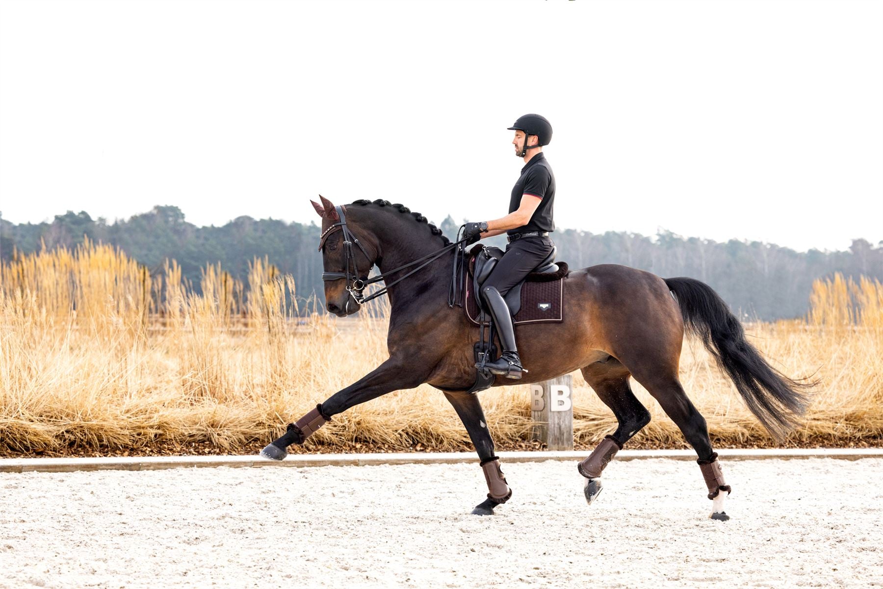 Now with a new sporty look and two layers of sophisticated cord edging, the Puissance Suede Dressage Square offers the very best of comfort and style. Available in two colours, this brick quilted suede pad is super soft and designed to fit a range of dressage saddles. Our game-changing bamboo lining regulates body temperature by wicking away sweat and moisture directly from your horse's skin. It also minimises friction, keeping even the most sensitively skinned horses comfortable. For a unique finish, we've added a metallic badge to add some style to your horse riding wardrobe.
