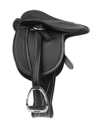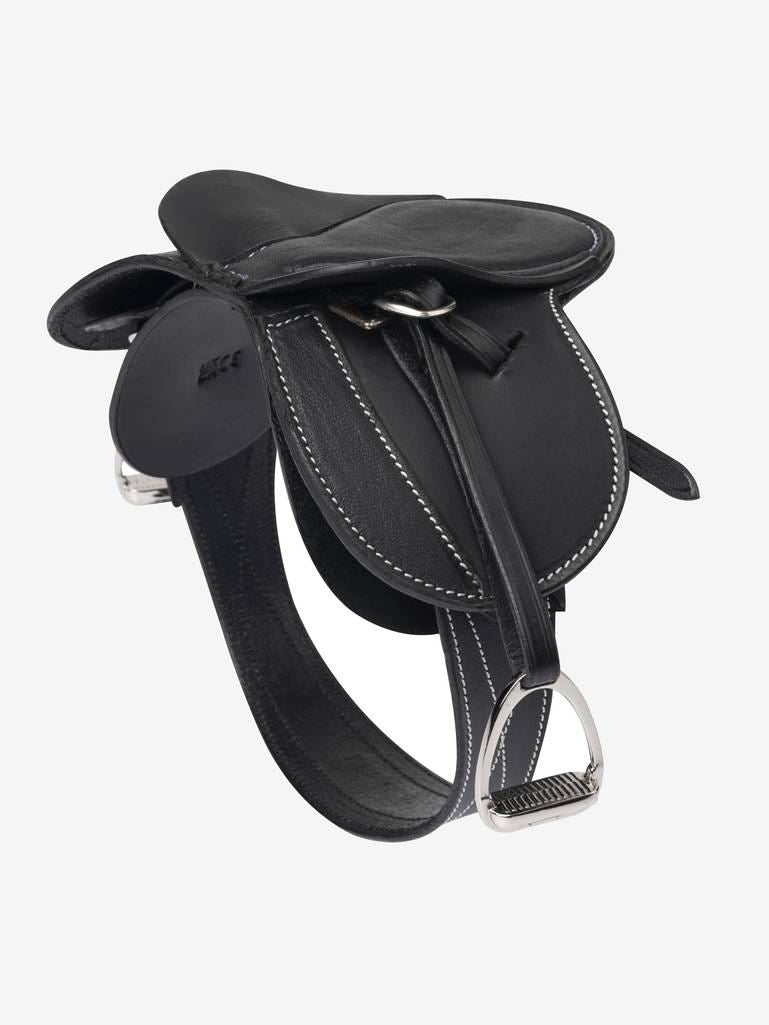 Exquisitely crafted miniature saddle in beautiful fine grain leather. Real design features including a double flap with three girth straps and buckle guards. Comes complete with detachable girth and metal stirrups which make this ideal for learning about parts of the saddle, practicing tacking up and tack cleaning. Suitable for ages 8 years +