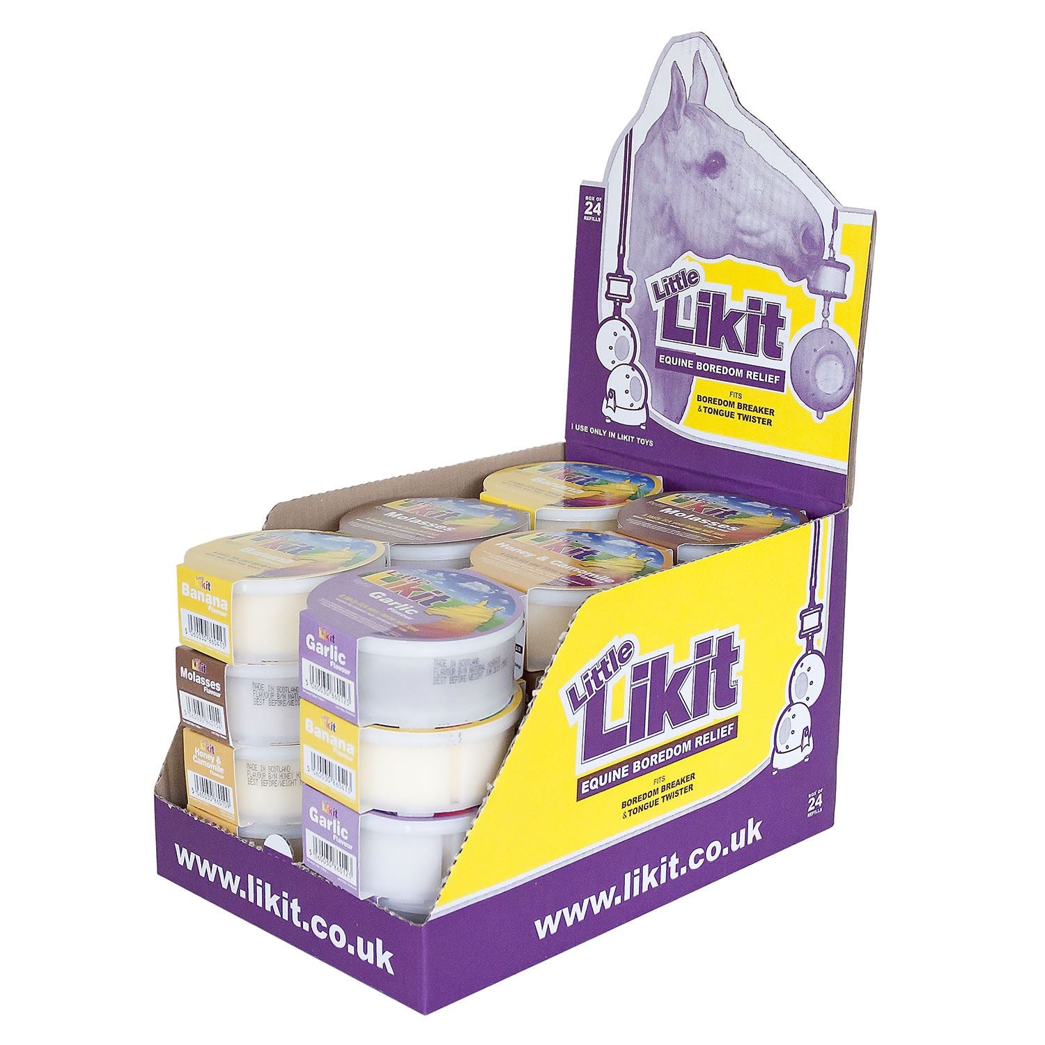 This Box of 24 250gm treat from Likit is for use with the boredom breaker, the boredom buster and the tongue twister. Also features guide and hold legs for easy insertion into toys. The tropical pack contains six each of garlic, honey & chamomile, banana and molasses.