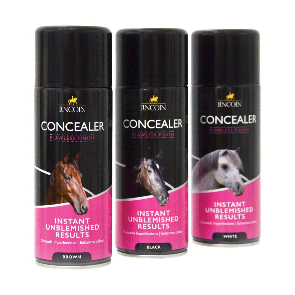 A coloured spray to conceal any blemishes on horse's coats. Use brown on brown & bay coats, black on black and white on grey and white coats.