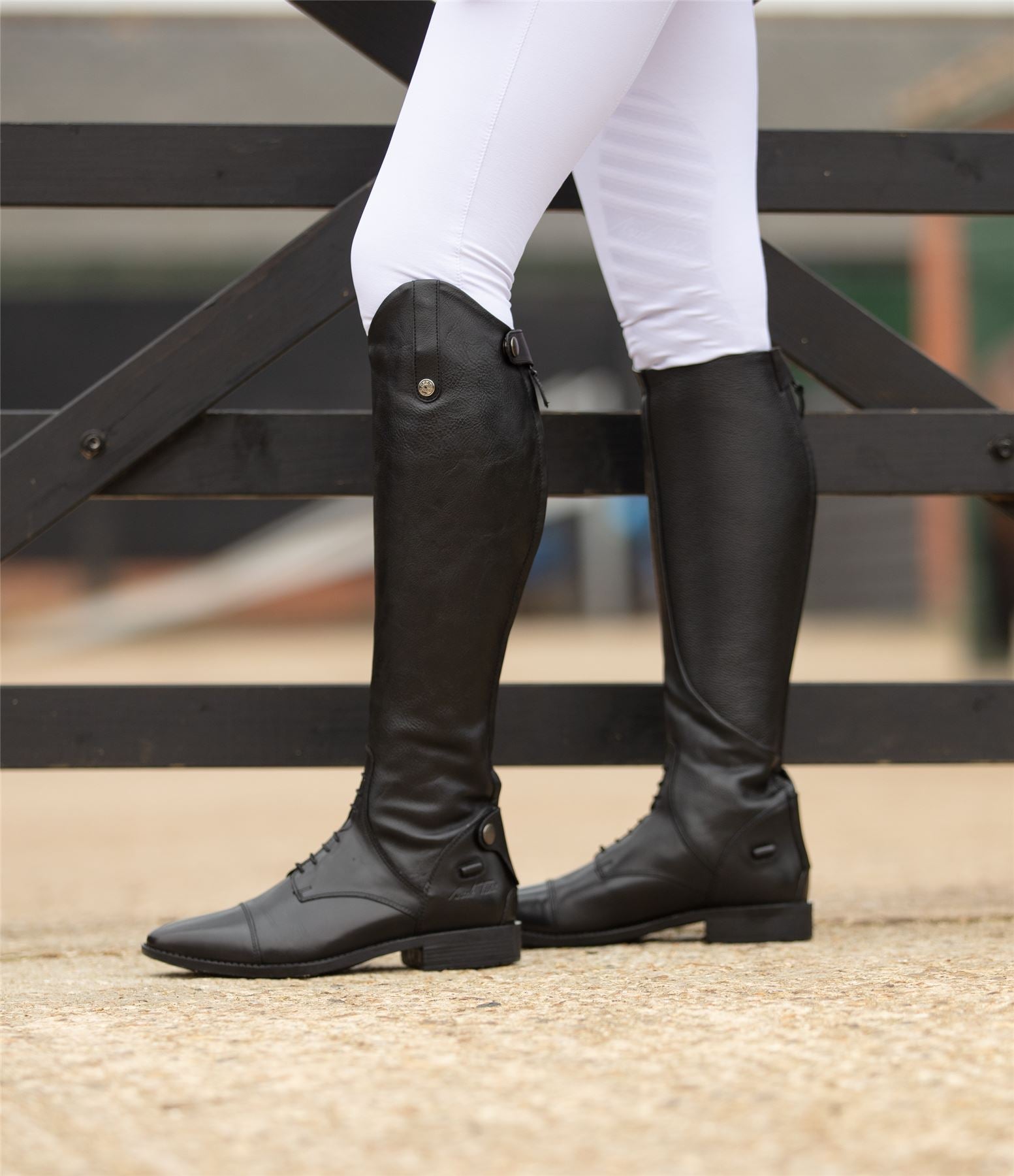 A super soft and fitted long boot, perfect for competition but also very practical for every day riding. Featuring a back zip, protective heel guard and elegantly shaped knee. There is a super stretch synthetic outer leg with leather foot and inside leg panel. Lined with breathable mesh for added comfort.