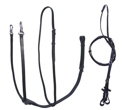 This Market Harborough is a training aid which will help provide more control. The Market Harborough comes with continental web reins and is best used during ridden flat work. This Market Harborough is designed to provide pressure to the bit if the horse raises its head too far, allowing you to gain more control superior to that of a running martingale.