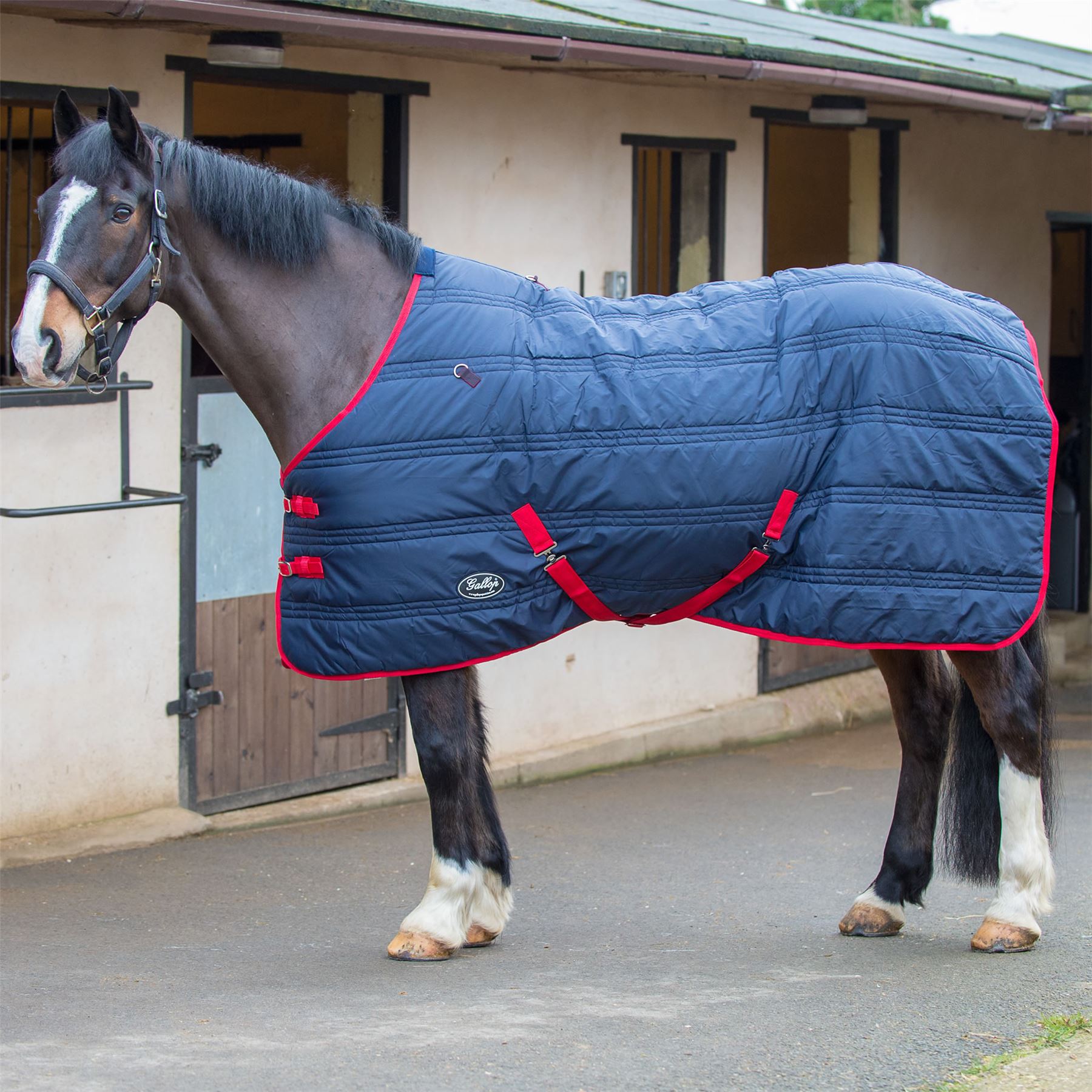 Features include two buckles front fastening, cross surcingles, fillet strings and D- rings attachments for optional Neck Cover. Warm comfortable stable rug this Gallop product is unbeatable value, once again!