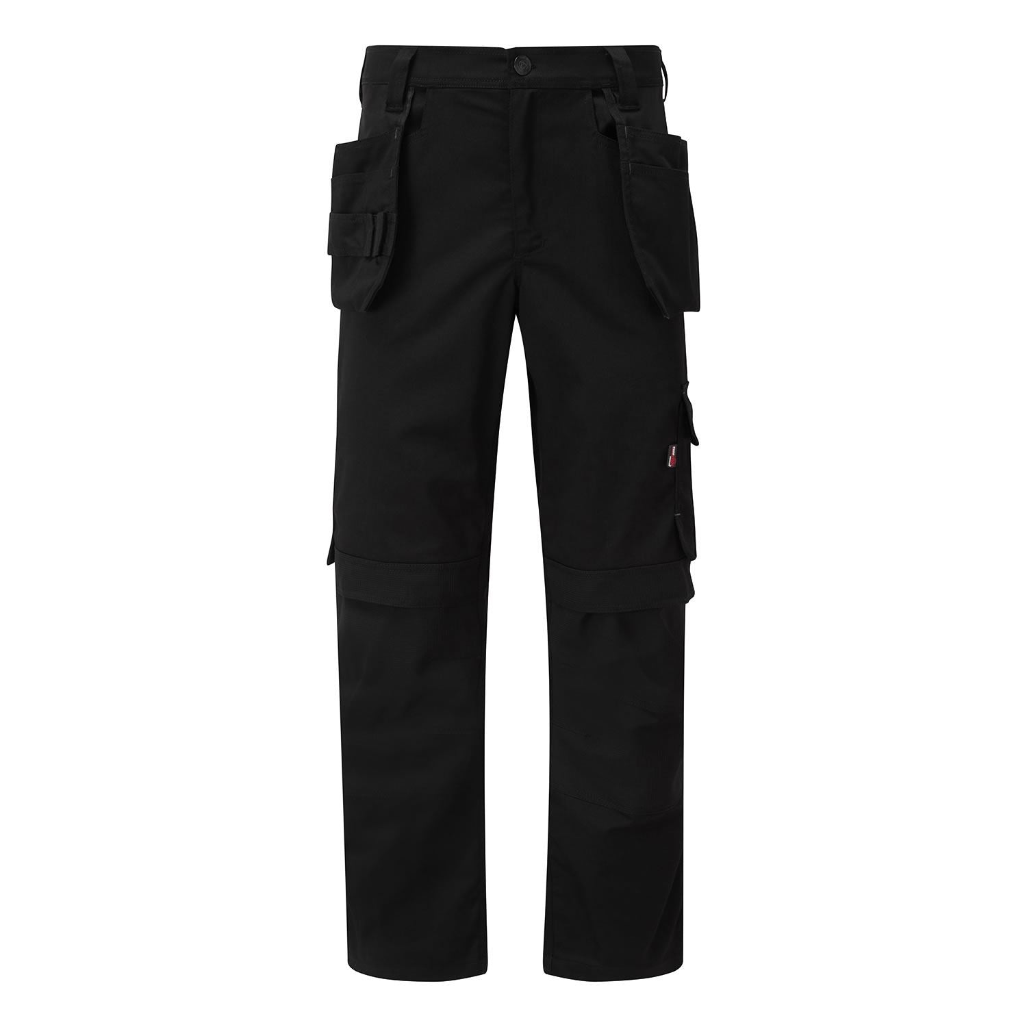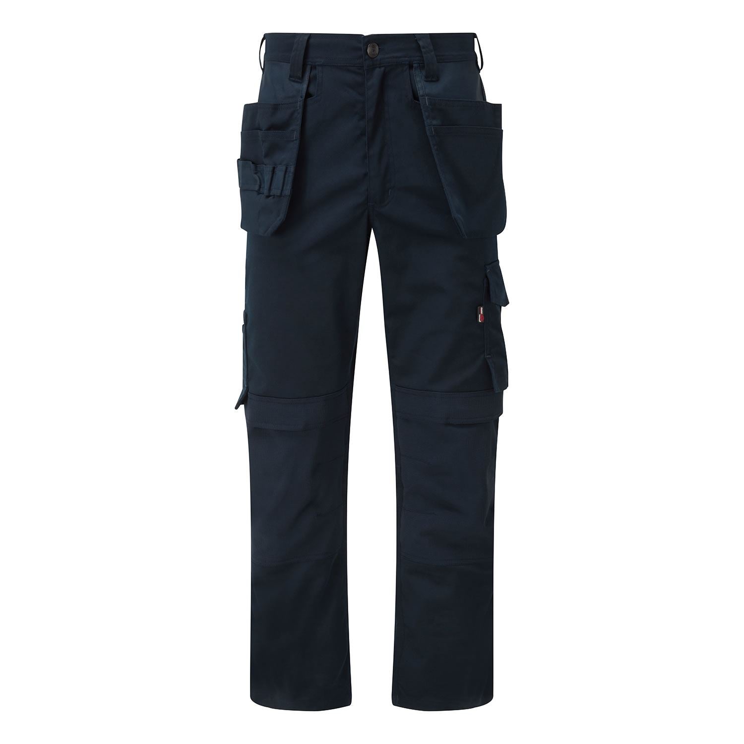 Slim fit, full stretch fabric trousers that stretch with you. Featuring triple stitched seams, tuck away Tuff-Tex reinforced holster pockets, top loading Tuff-Tex 2.0 knee pad pockets and a Tuff-Tex reinforced hem. YKK zip. Materials: 260gsm, 63% polyester, 34% cotton and 3% elastane. Long length is 32.5 inches.