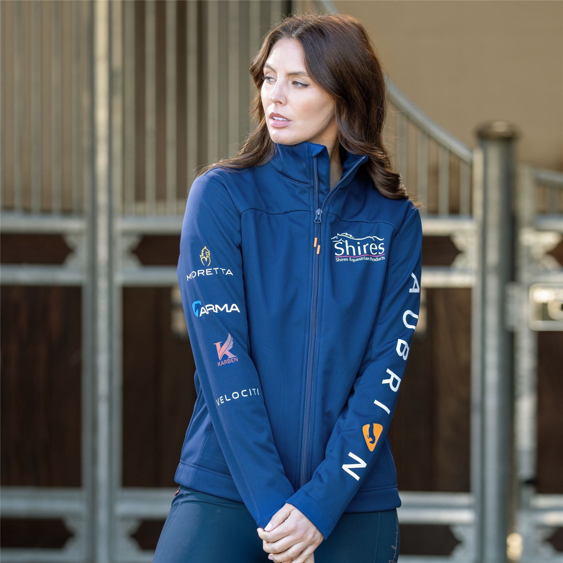 Embrace the professional equestrian look with the Just Horse Riders' Shires Aubrion Branded Softshell - A Unisex staple for any rider's wardrobe. Reflecting the vigorous style of the Aubrion Pro-rider team, this softshell jacket is decorated with distinguished Shires brand prints, infusing a premium vibe to your equestrian gear.