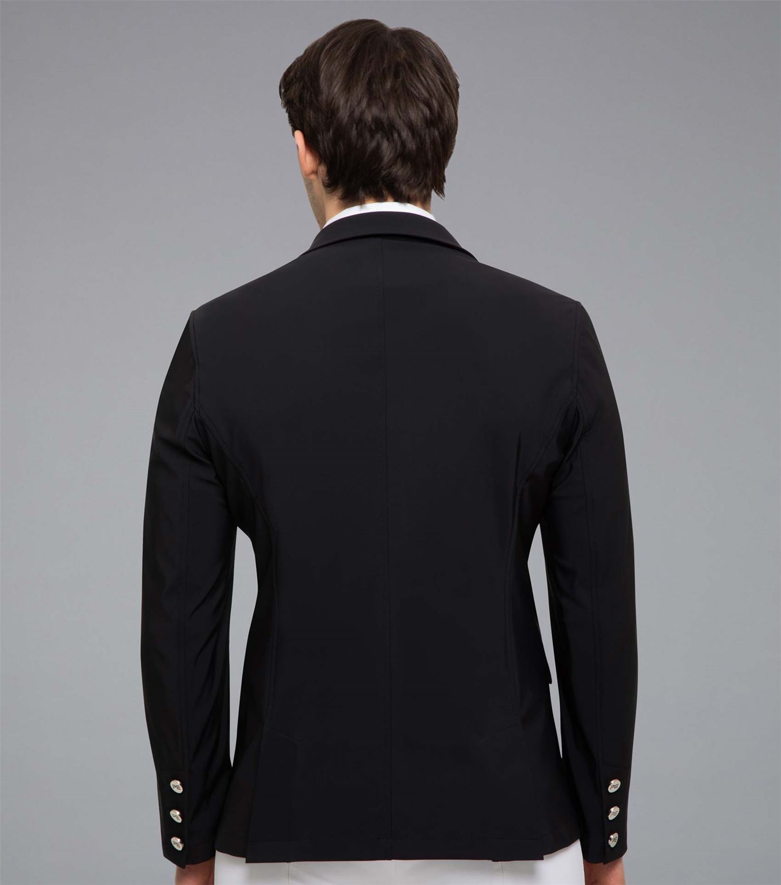 The Enzo Men�s Competition Jacket is suited for a wide range of disciplines. The classic men�s design delivers sophistication and comfort to the wearer through a range of technical properties and style details. Crafted from a highly breathable, lightweight, four-way stretch technical fabric, the Enzo competition jacket provides a refined and tailored fit delivering optimum comfort and long-lasting durability, making it a perfect staple piece in any rider�s collection. The classic fit is timeless, and the technical composition of the fabric provides optimal moisture wicking properties and mobility through the four-way stretch, enabling the wearer to achieve optimal freedom of movement in and out of the saddle. Featuring two vents at the back and an athletic mesh lining, the competition jacket provides maximum airflow and comfort to the wearers skin. The Enzo Men�s Competition Jacket has been aesthetically designed with �PE� branding and features two deep jetted flap pockets at the front, with a faux welt top pocket adding functionality and style. The jacket has a buttoned-down fastening and a detailed buttoned sleeve cuff. Whilst the PE branding throughout boasts quality, the Enzo is an eye-catching competition jacket that displays sophistication and sporting class across all disciplines and delivers a sense of professionalism.