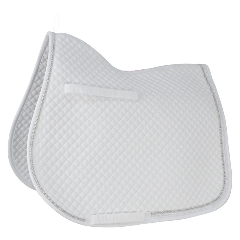Shop now at Just Horse Riders for our luxurious HyWITHER Diamond Touch GP saddle pad. This high-quality equestrian accessory perfectly combines functionality and elegance. The HyWITHER pad is designed to accommodate a high wither and features a clear spine, ensuring your horse's utmost comfort during riding sessions. Its unique 3/4 circle pattern is beautifully complemented with a border braiding of rope and dazzling diamante crystals, adding a touch of glamour to your equestrian gear. Plus, it's machine washable, which makes cleaning a breeze. With our quick dispatch and delivery service, you can get this glamorous yet practical saddle pad in no time. For any queries, feel free to contact us. At Just Horse Riders, we pride ourselves on our top-notch customer service.